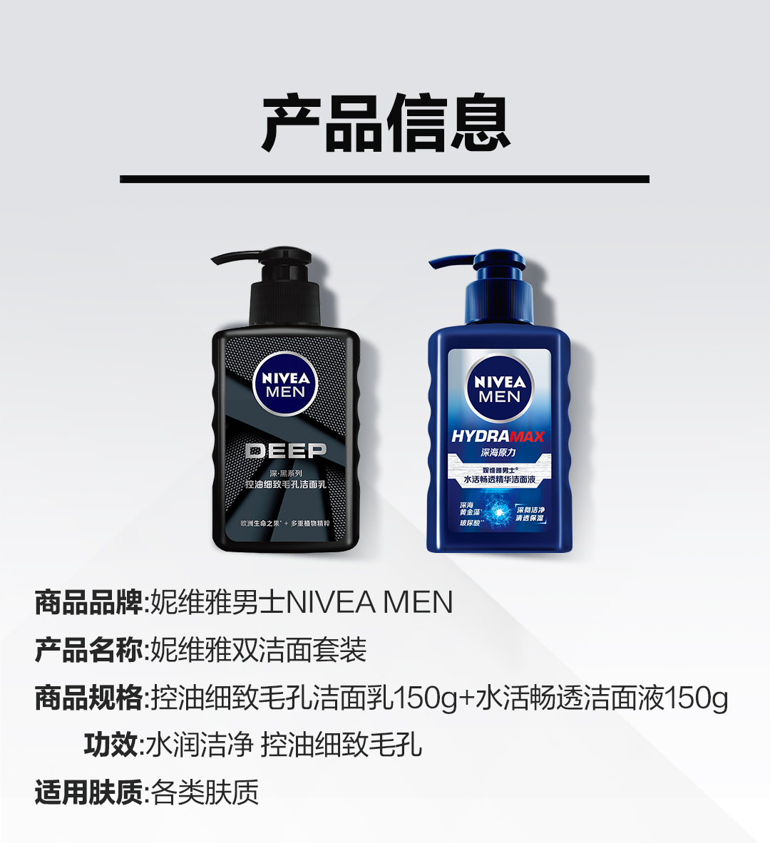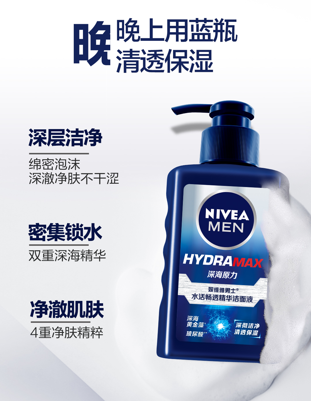 这款妮维雅 男士水活畅透精华洁面液,无酒精配方,清透露状质地,深入肌底,快速吸收,肌肤畅透不感粘腻,专为男性肌肤设计,瞬间注入大量水分,密集保湿,提供长时间持久滋润。帮助有效解决肌肤干燥、粗糙、暗沉、皮屑、泛红、干纹、毛孔粗大、缺乏弹性、外干内油等肌肤问题。