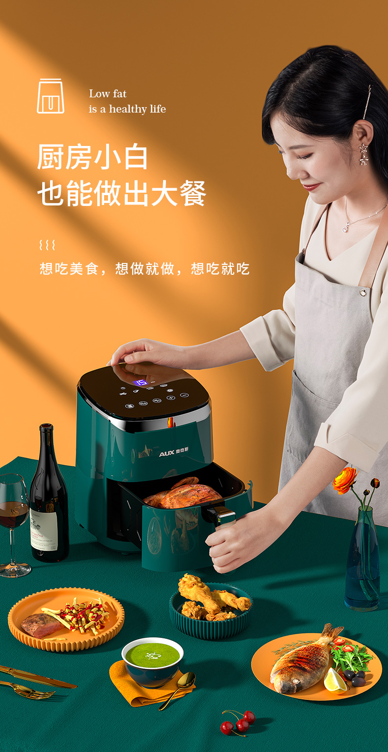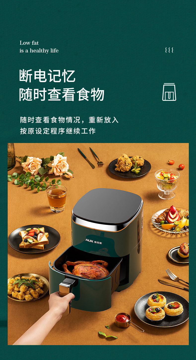 机械款此价。AUX奥克斯无油空气炸锅,4.5升大容量、采用高速空气360°循环原理,多功能无油速炸、锁住营养和水份,过滤多余油脂,居家使用非常方便。