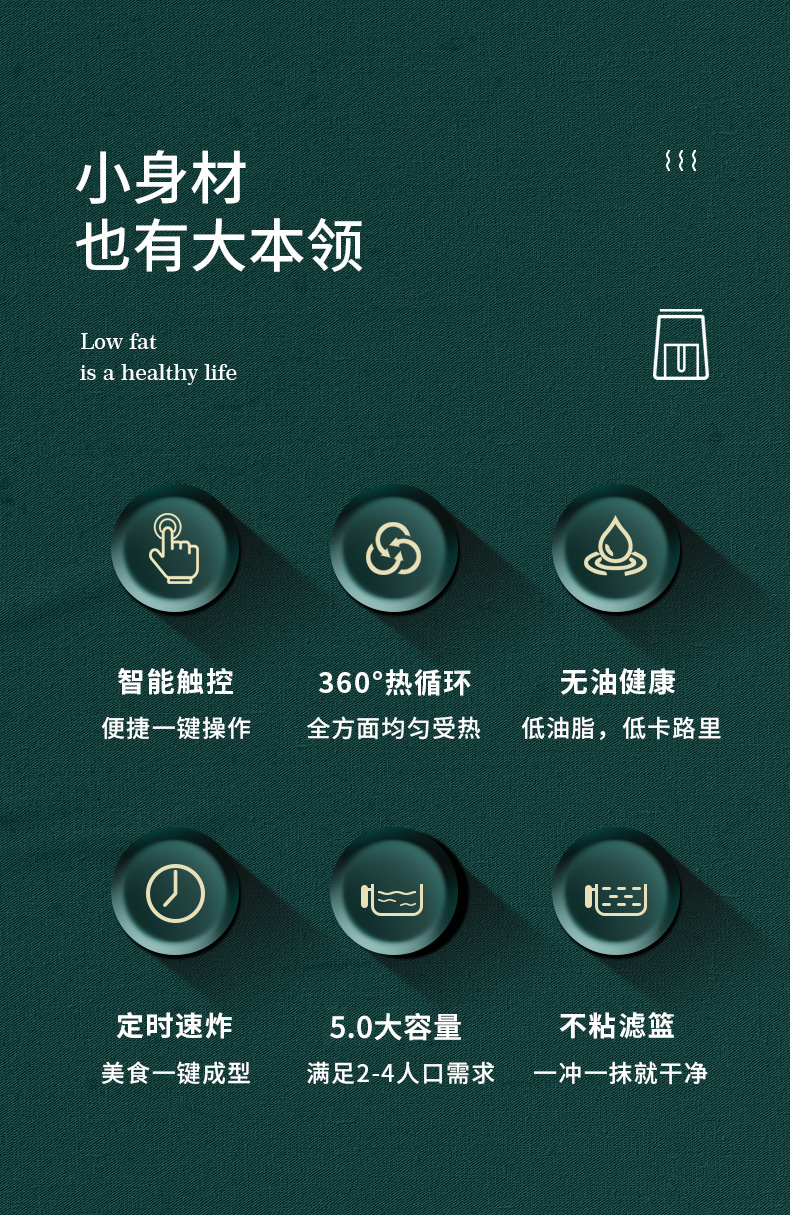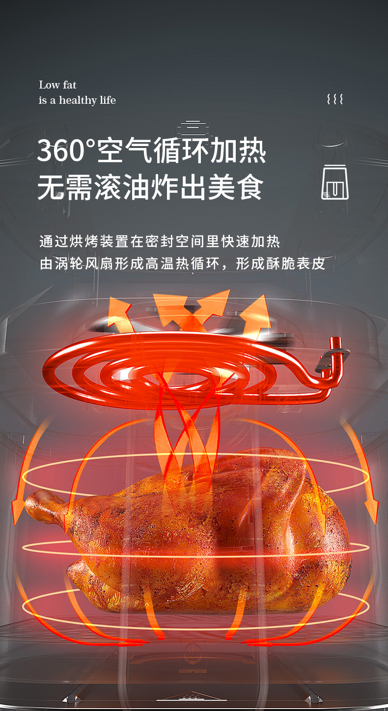 空气炸锅其原理和烤箱类似,通过高速热空气循环,利用食物自身的油脂炸熟食材,相对比传统的油炸更健康,口味也和烧烤的差不多,味道不错。相比烤箱的大体积,空气炸锅更省空间,适合三口之家日常使用,比较实用。
