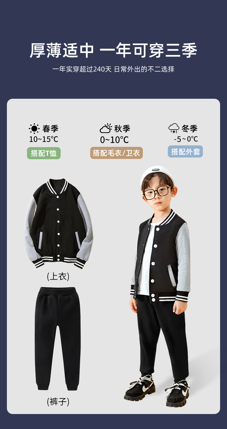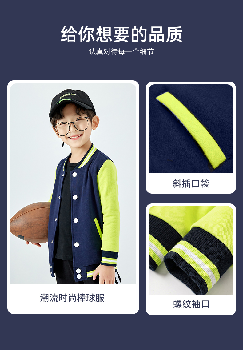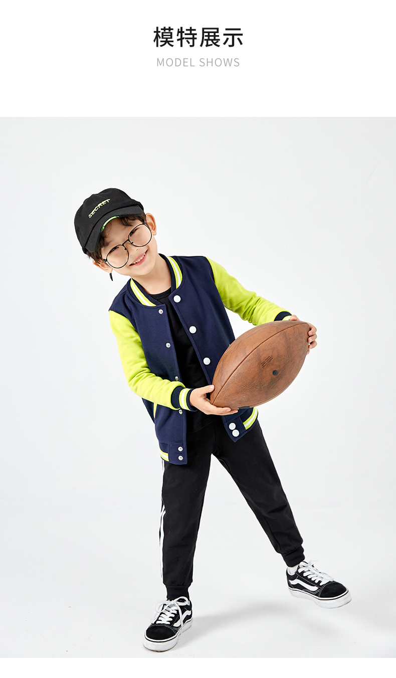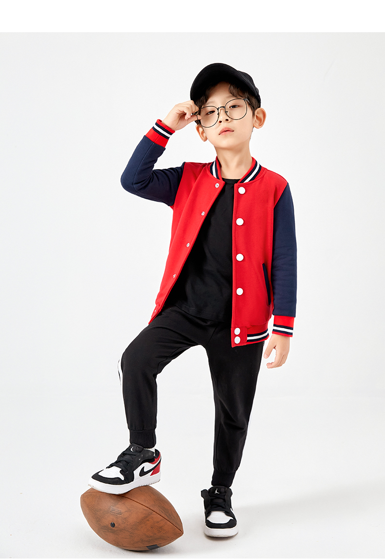 这款潮流时尚棒球衫,80%长绒棉+20聚酯%混纺面料,面料薄厚适中,柔软亲肤,透气舒适,不易起球、不易褶皱,水洗不变形,合体版型,横机螺纹领口+袖口+下摆,弹力贴合穿着舒适。潮酷印花刺绣,上身帅气,日常休闲、运动都能穿。