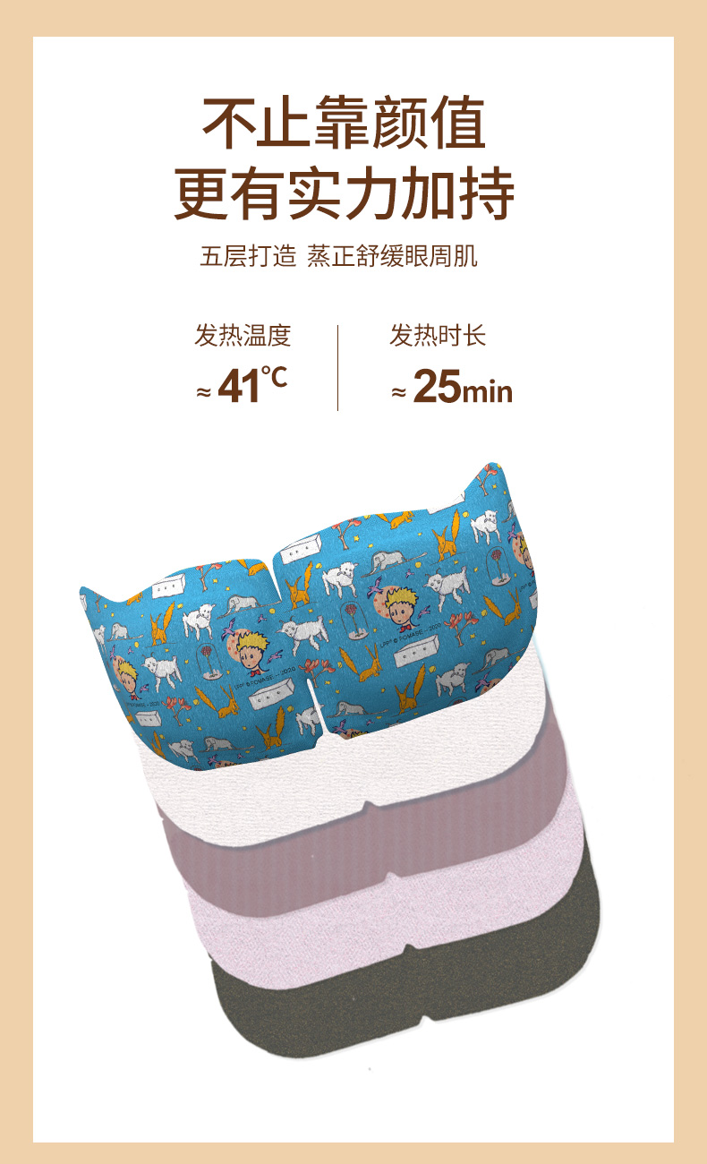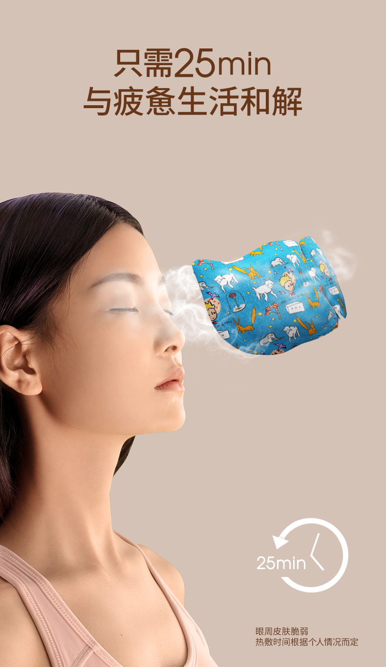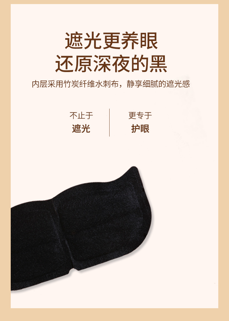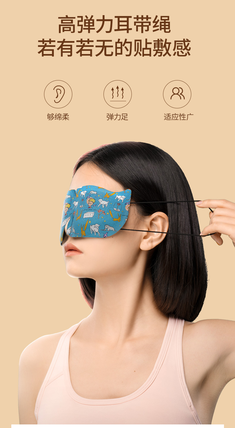 罩体是柔软高弹的水刺无纺布面料,亲肤安全无毒,内置1mm发热片,对眼部无压感,挂耳不疼,翻身不掉。