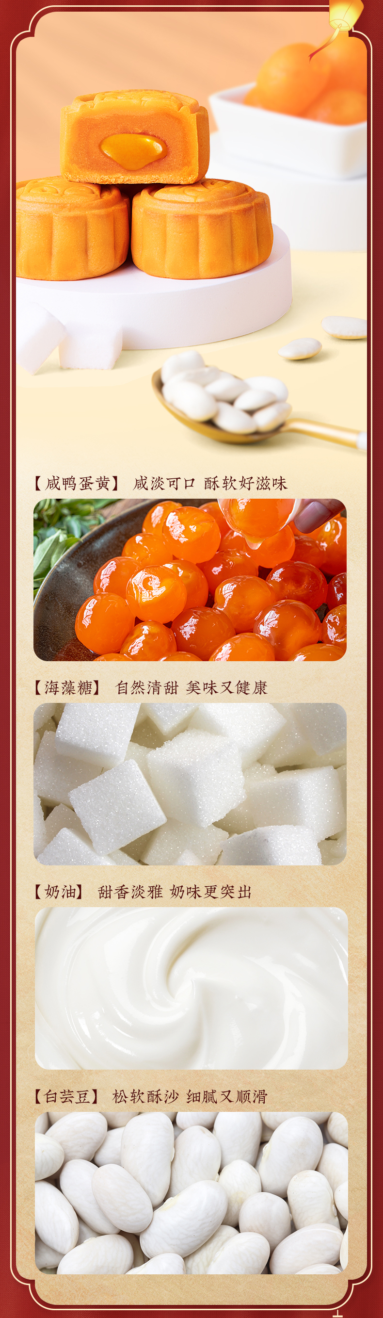 “流心月饼”是去年的大火的一款网红月饼,用适度火候烤制出酥香奶味的饼皮,搭配内里浓滑的奶黄馅料,切开月饼后就能看到幼滑的奶黄呈半溶状态流出,一口咬下,浓浓的奶黄味道充斥口腔,丰富口感,