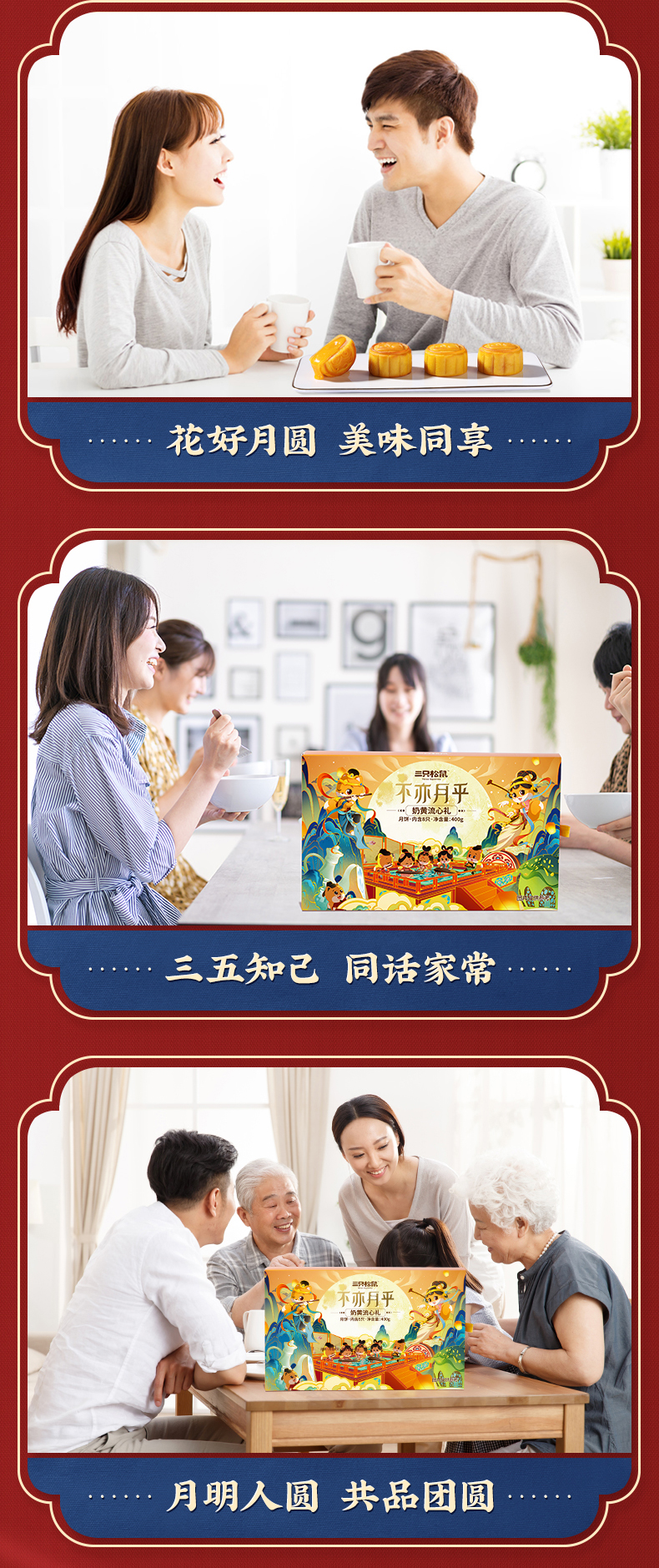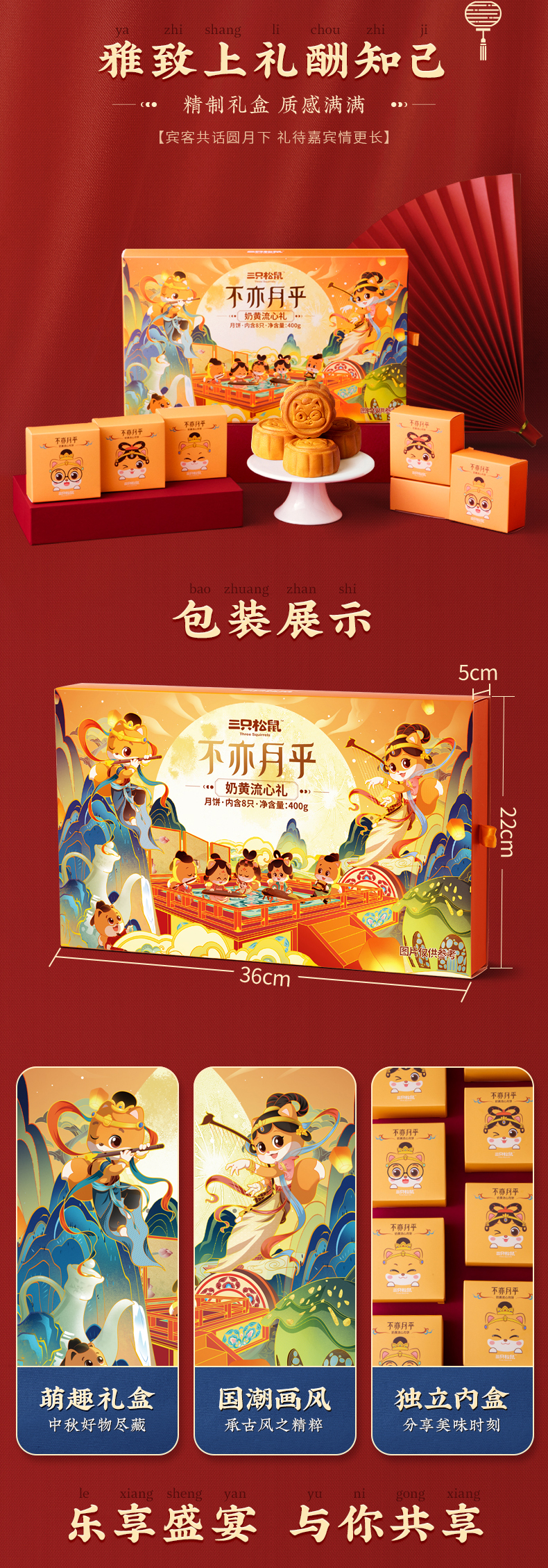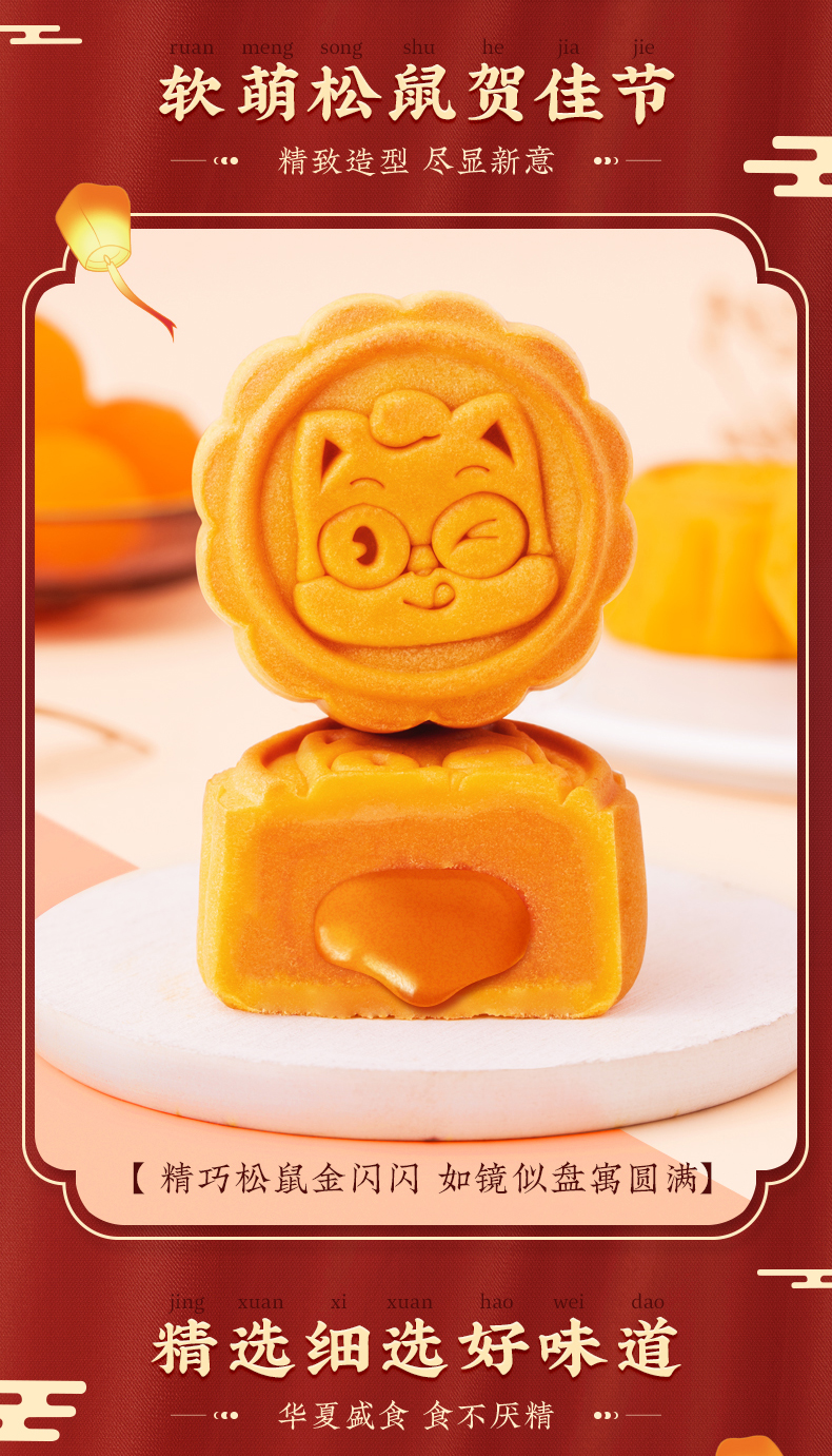三只松鼠高档月饼礼盒,甄选咸鸭蛋黄、海藻糖、奶油、白芸豆等制作,港式饼皮,口感软糯细腻,奶黄流心,爆浆幼滑,咬一口就会上瘾~