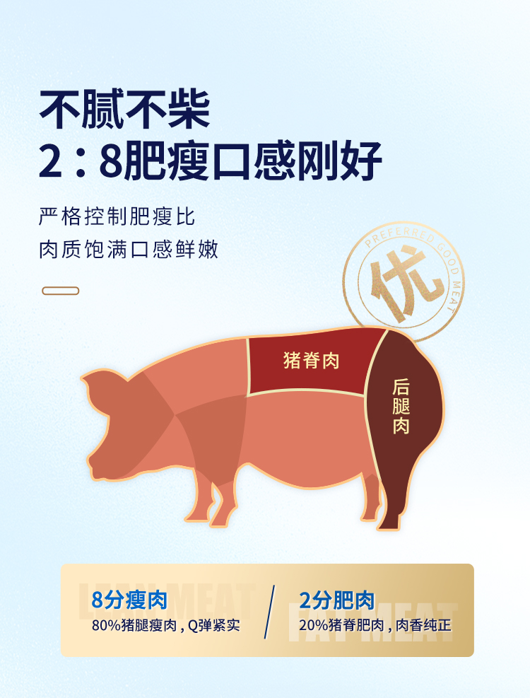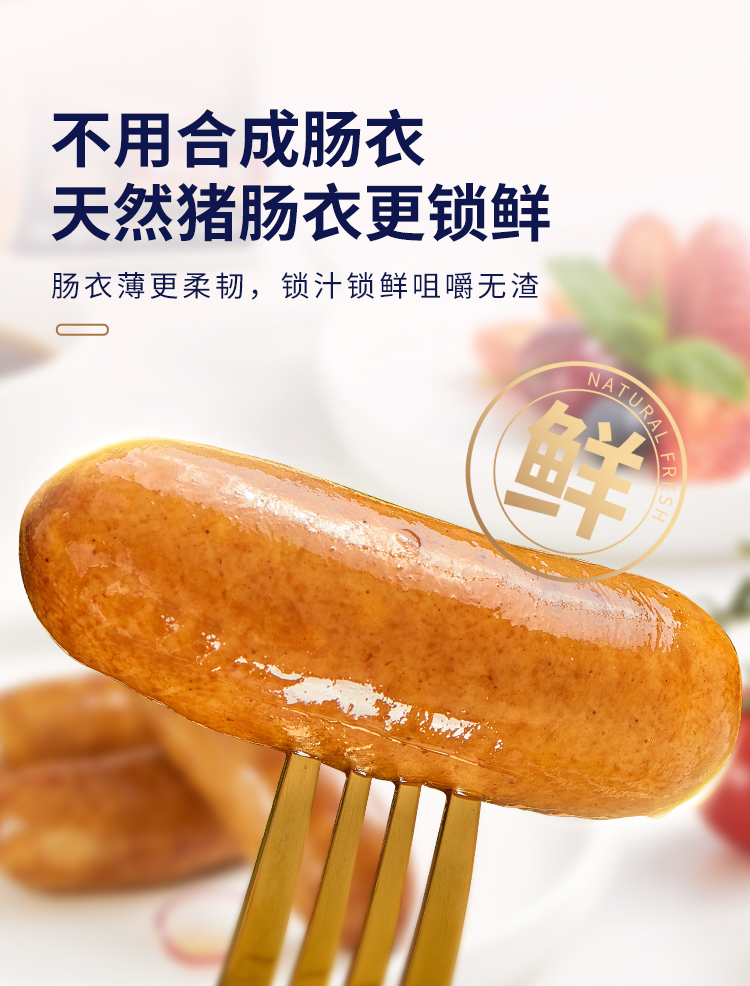 这款王家渡 爆汁火山石烤肠,使用天然猪肠衣,薄更柔韧,锁汁锁鲜咀嚼无渣,内里是90%以上的肉粒,肉感Q弹紧实,入口满嘴肉香,一口爆汁。2:8的肥瘦比例,不腻不柴,0香精、大豆蛋白、亚硝酸盐、色素、防腐剂,小份包装,食用方便。