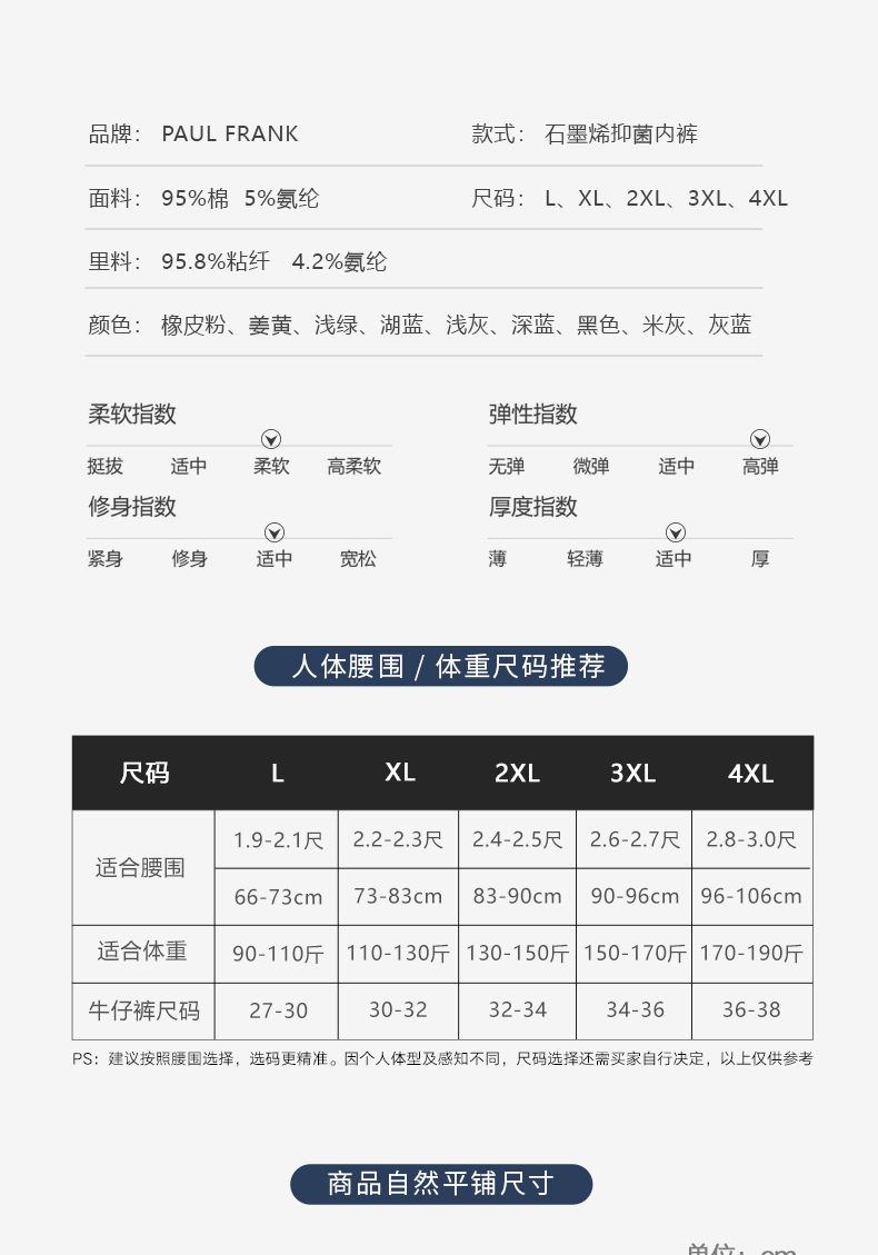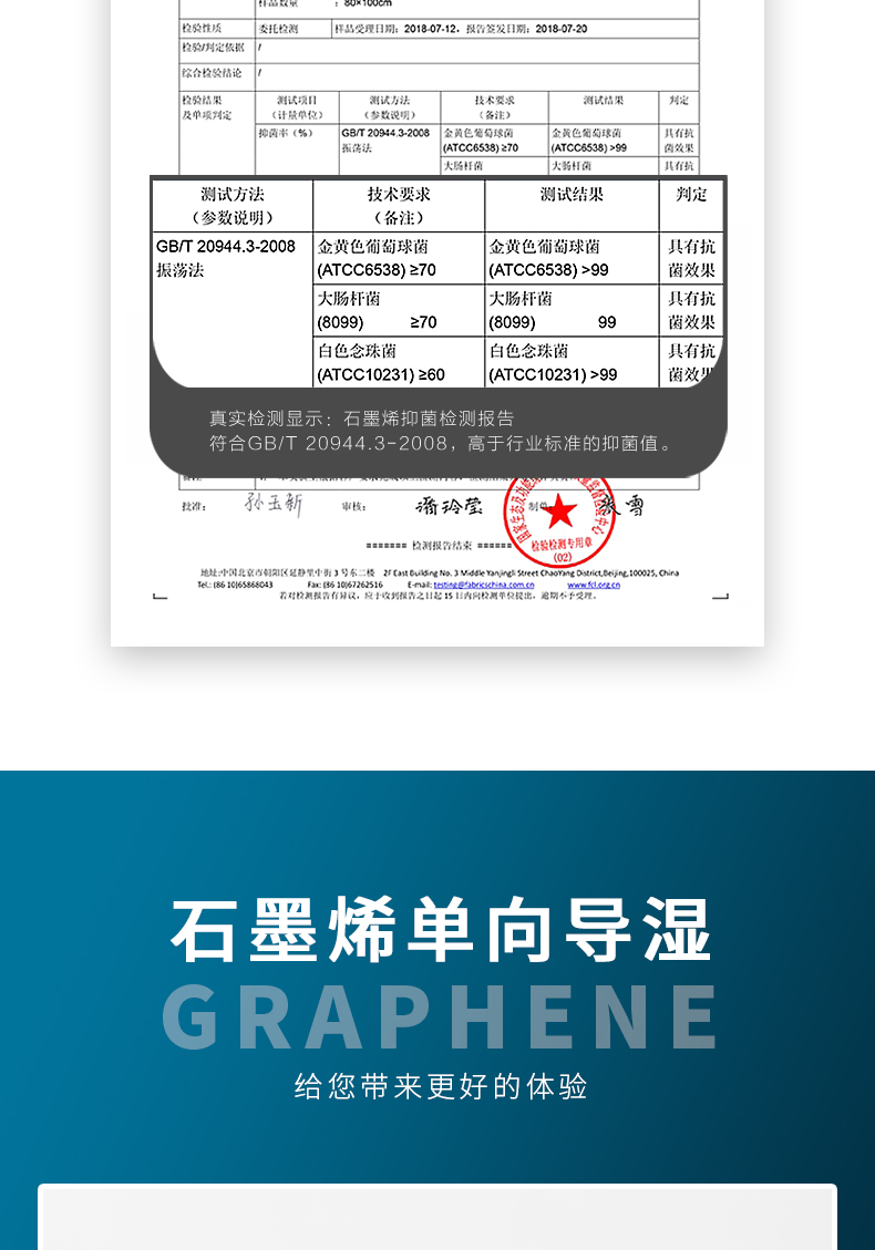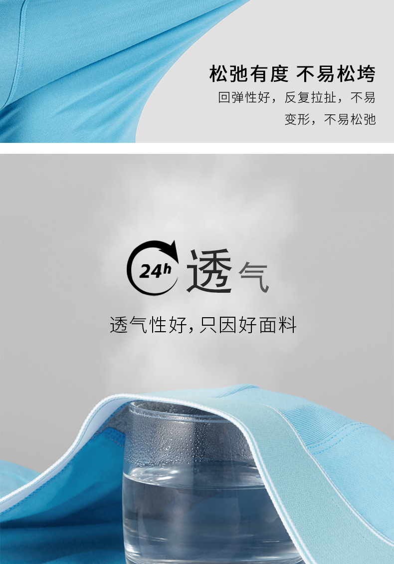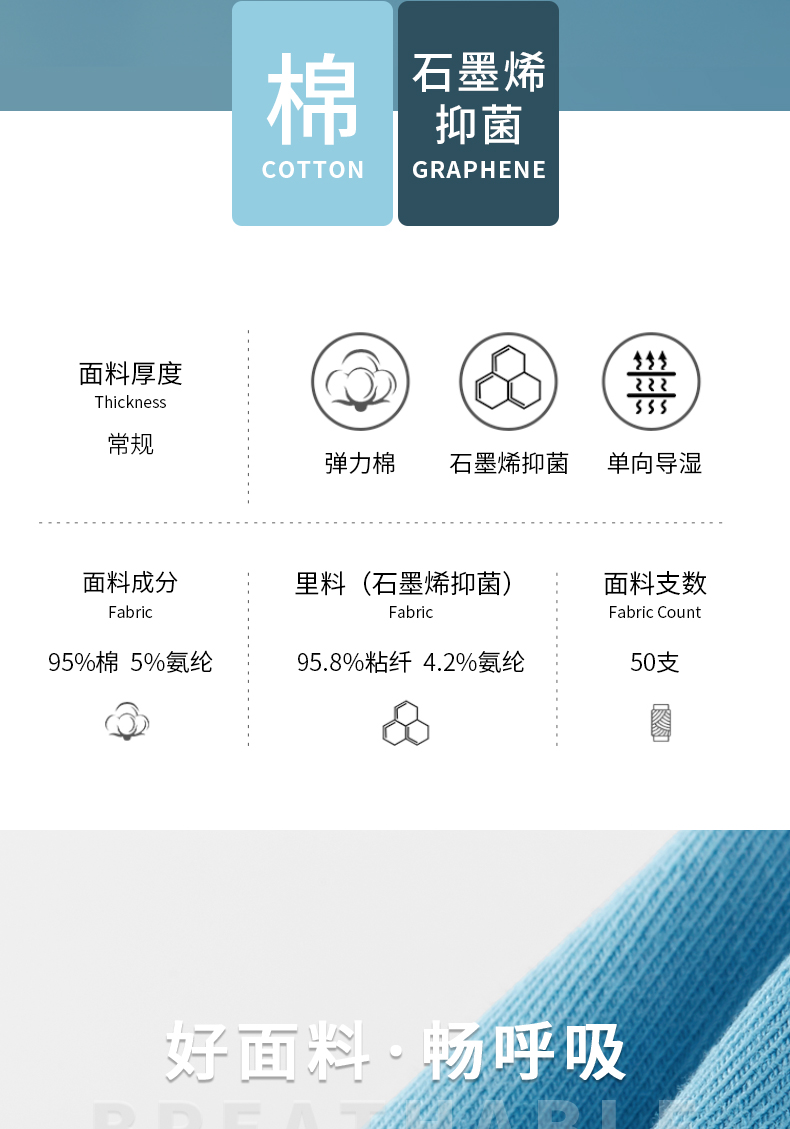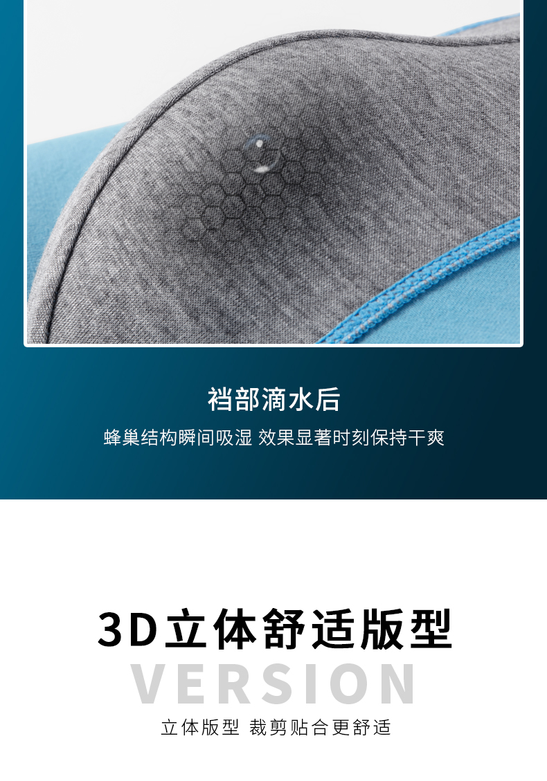 内档采用95.8%粘纤+4.2%氨纶融入石墨烯抗菌技术、亲肤透气,导湿速干,亲肤呵护重要部位,长时间保持干爽舒适,