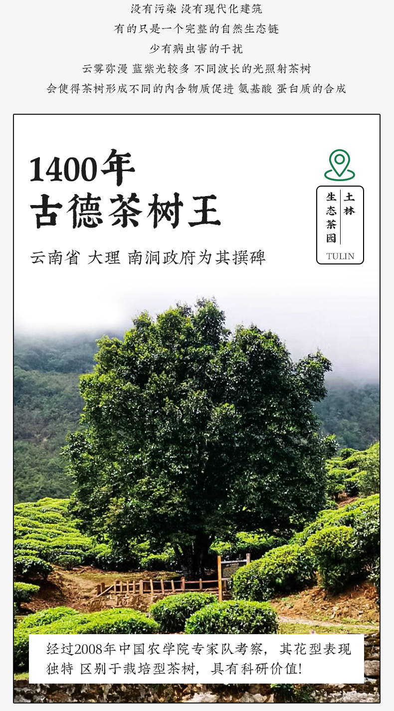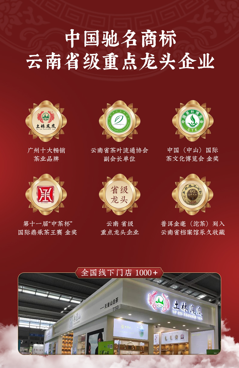 云南土林茶业有限公司前身是成立于1985年的国营南涧县茶厂,作为云南普洱茶界的老牌企业,经历了35年的发展,现公司坐落在南涧县城无量山高山茶产业园,注册资本7300万元,占地近40亩,年生产能力达3000吨以上。35年来,按照“公司+基地+专业合作社”的经营模式,以品牌为主导,以渠道为依托,以技术为基础,以发展为动力,为消费者提供优质的茶产品及茶服务。深厚的茶文化和制茶技艺积淀,依托优质的无量山高山茶原料基地,汇聚临沧,普洱,西双版纳等地的名优茶山原料,经过数十年几代“土林凤凰人”的砥砺拼搏,孕育出了业界极具影响力的普洱茶品牌—“土林”牌云南凤凰沱茶,已获得“中国驰名商标”。