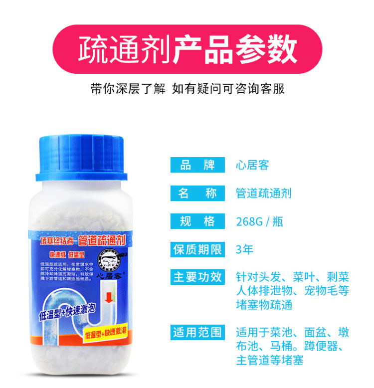 天猫心居客旗舰店23.9元,可领14元优惠券,实付9.9元到手,是正价66元的1.7折;采用多种表面活性剂,浓缩固体配方,一瓶抵三瓶,强力溶解附着在管道内壁上的油渍、食物残渣、毛发等粘稠污物,迅速净化、抑制细菌滋生、清除异味,防止管道老化堵塞,疏通新潮流。领券链接点此
