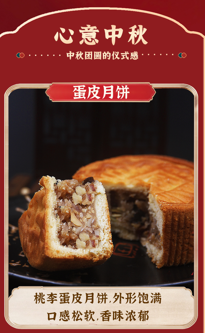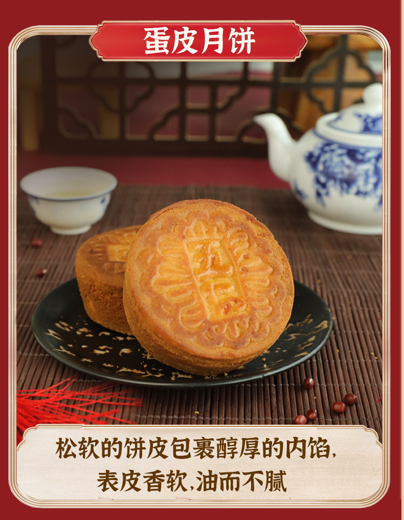 蛋皮月饼是一种将适量鸡蛋添加入月饼饼皮制作而成的月饼,这种月饼相比于传统的月饼来说,降低了油腻感,蛋黄烧月饼蛋香浓郁,入口比较软,有松、软、酥等特点。