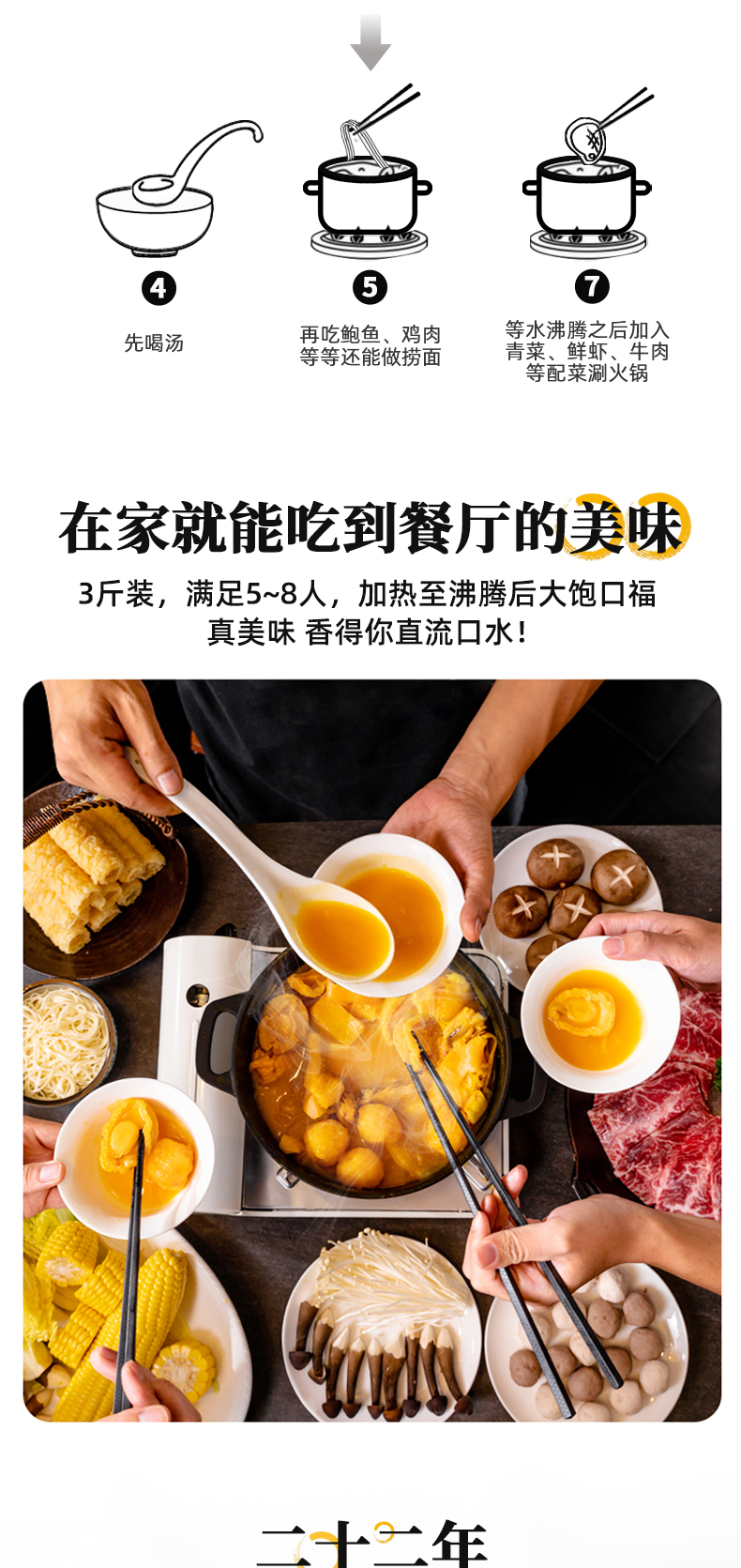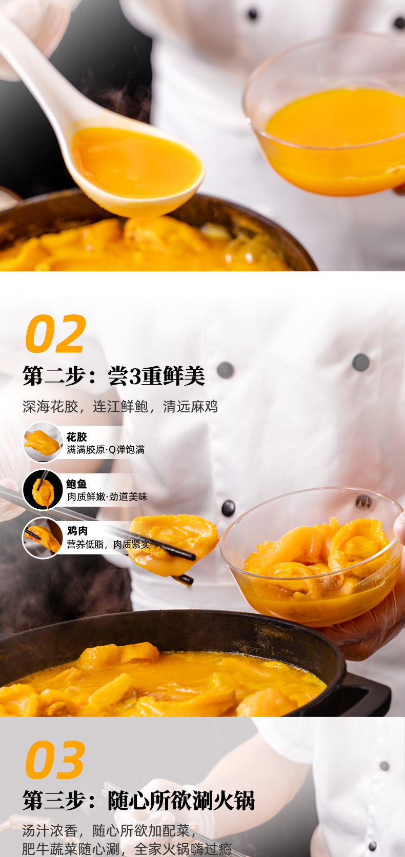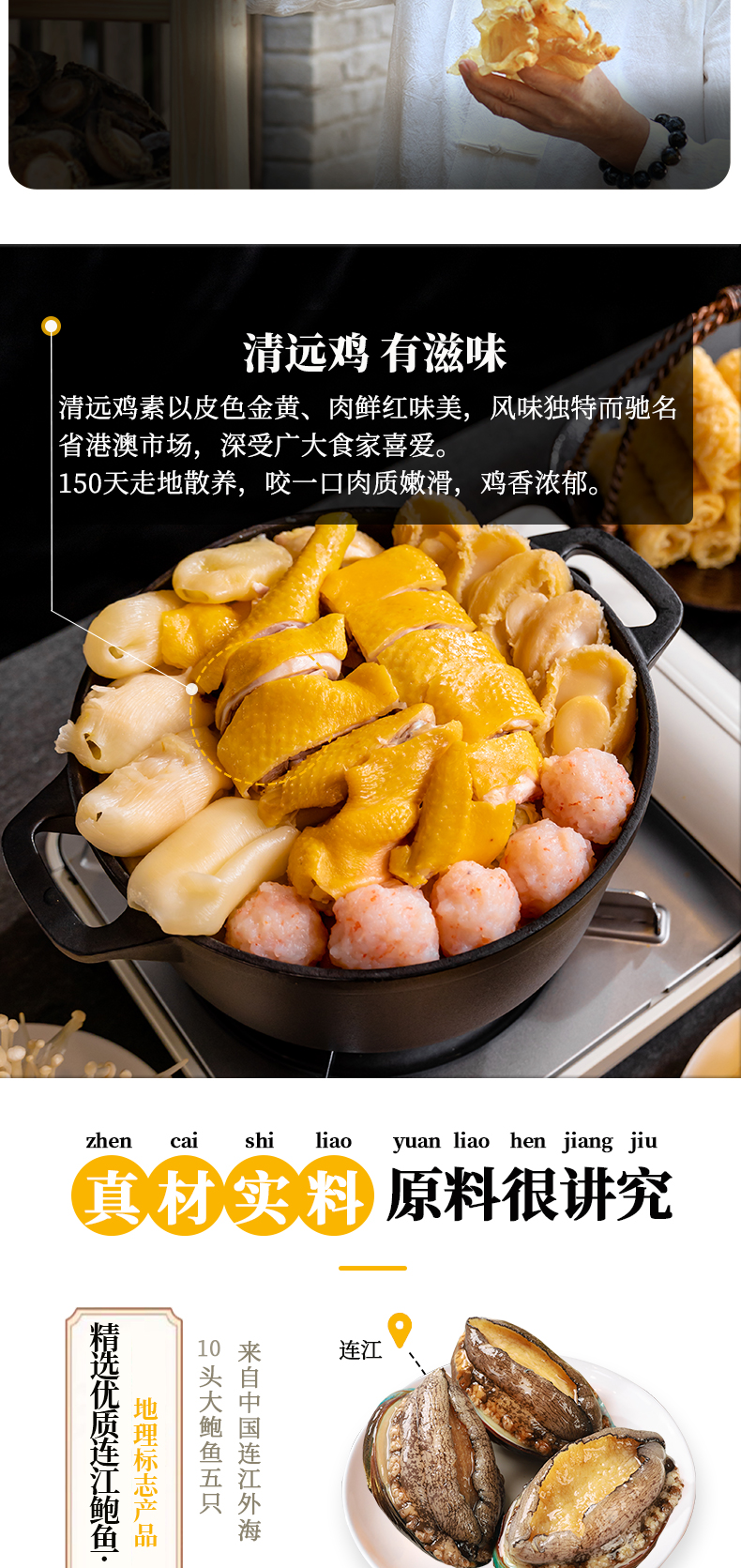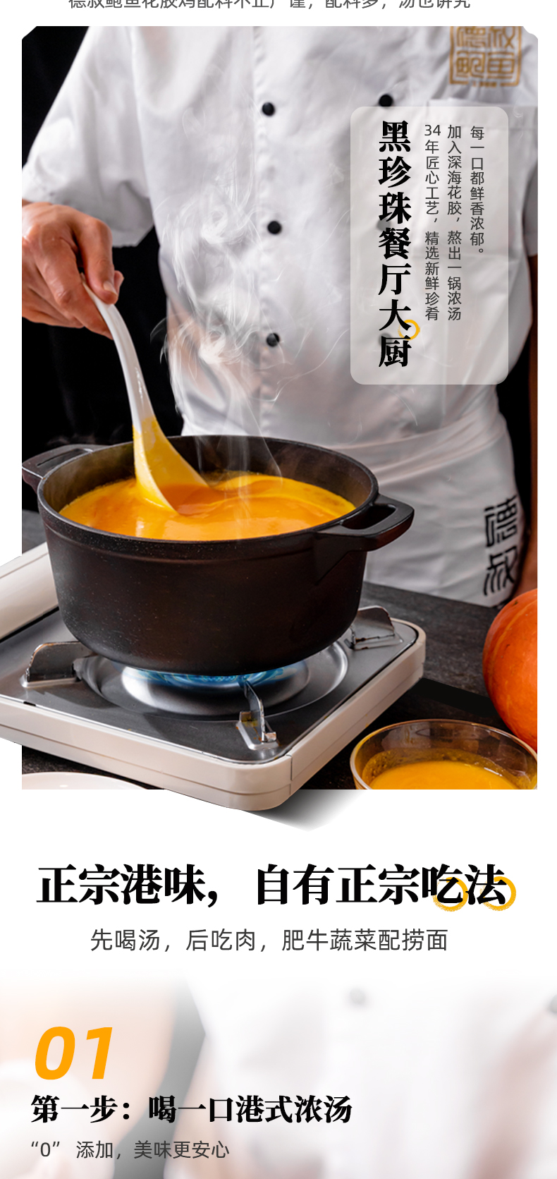 德叔 港式金汤 鲍鱼花胶鸡,正宗港式风味,黑珍珠餐厅选材标准,包含:深海鳕鱼胶胶 10块(100g)、10头黄金鲍鱼 5只、广东清远走地鸡 500g(拒绝冷冻肉)、虾丸 5颗、螺肉片若干。料足且优,性价比更高,金汤鲜美醇厚,12小时慢熬,拒绝防腐剂、增稠剂,精选猪棒骨、干贝等多种真贵食材熬制,滋补美味,简单加热即可食用,非常方便。