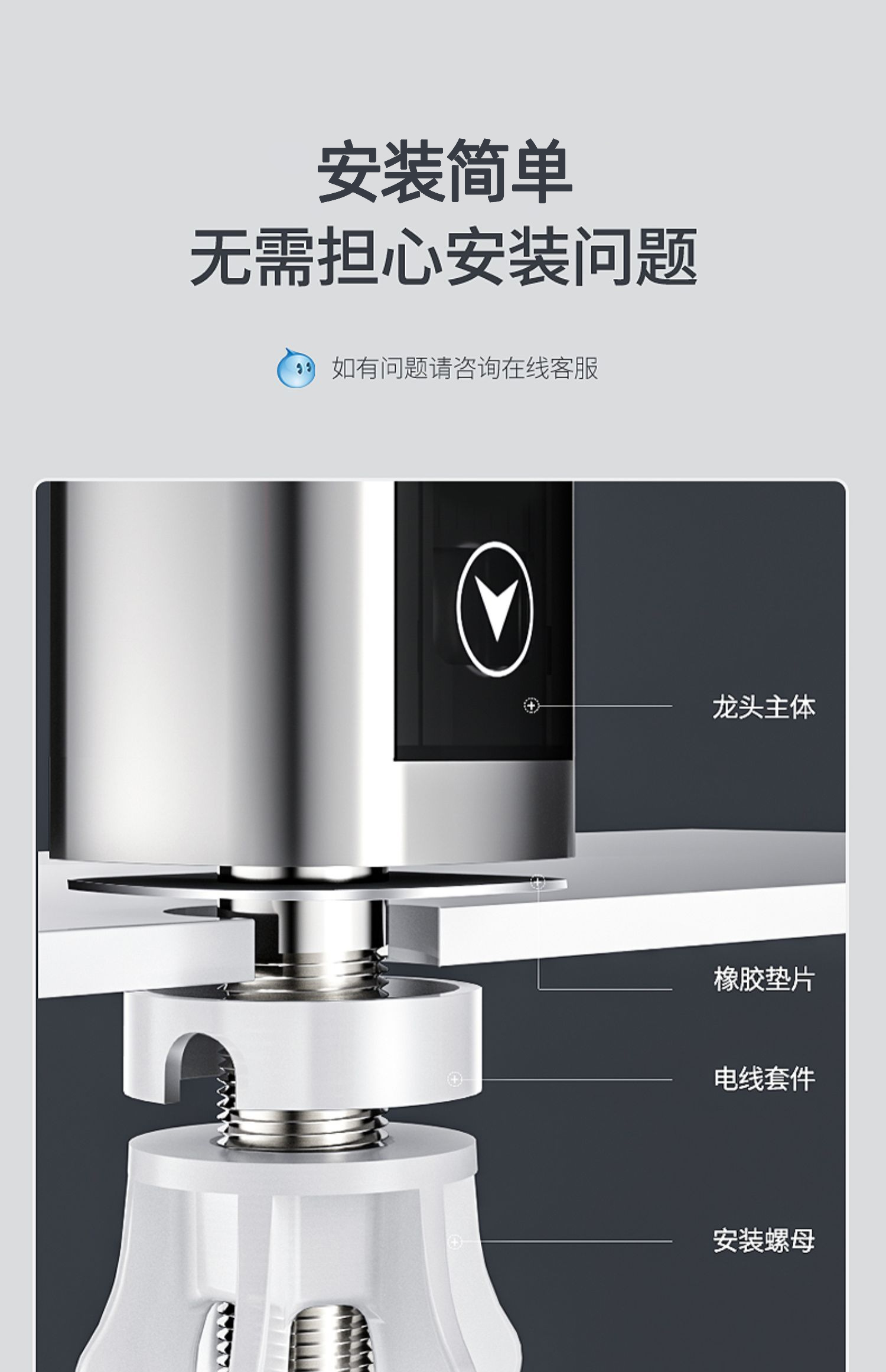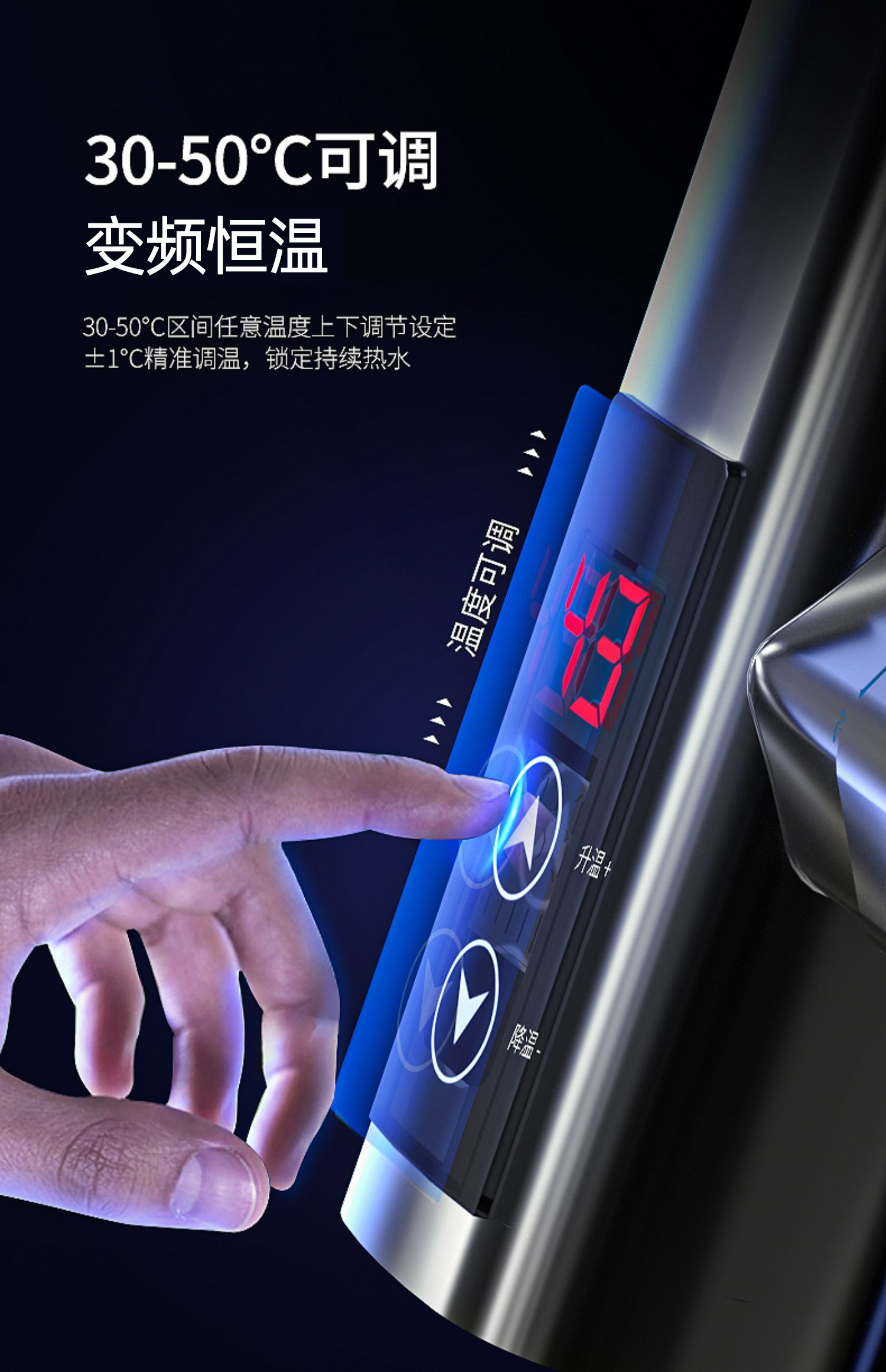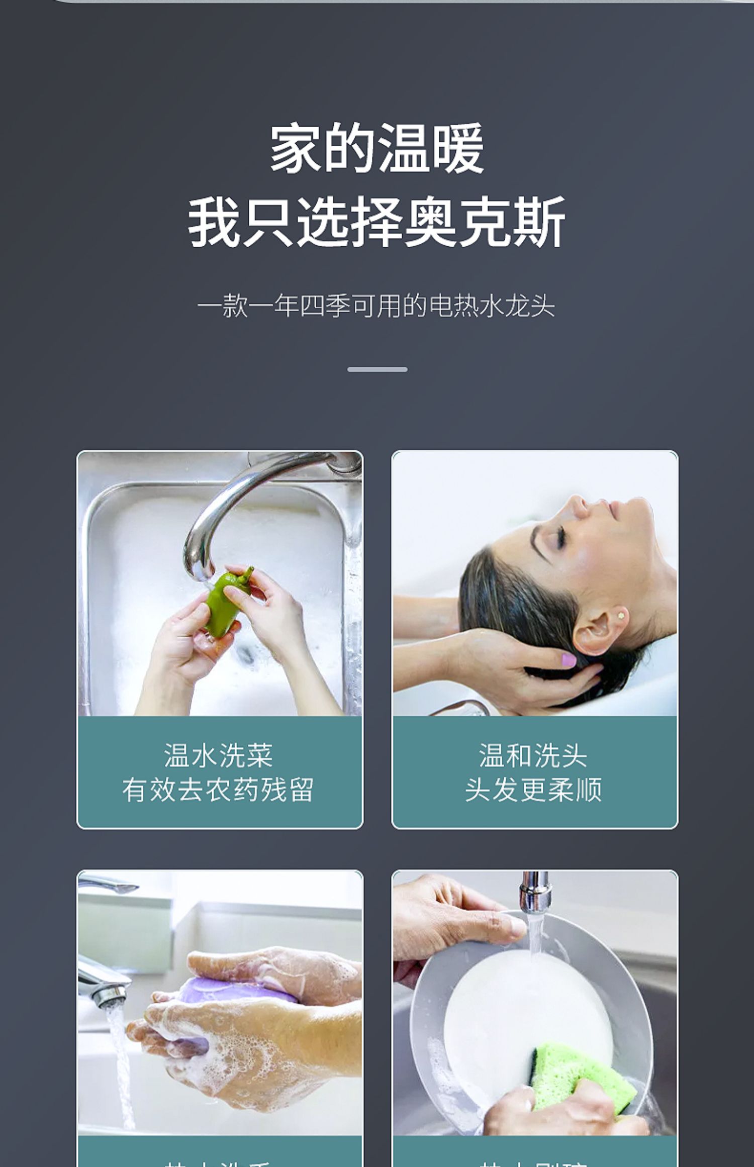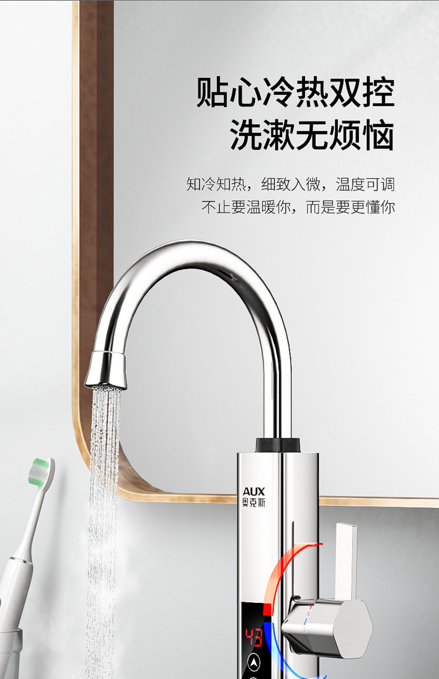 不锈钢加热管,三秒即热,智能数字显示,水流控制温度,冷热双用。360度旋转弯管,多层电镀工艺,色泽光亮,易清洗,耐腐蚀。陶瓷阀芯,水电分离,多种安全防护,全国通用管径。