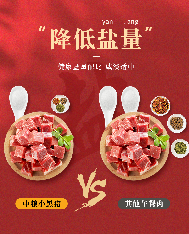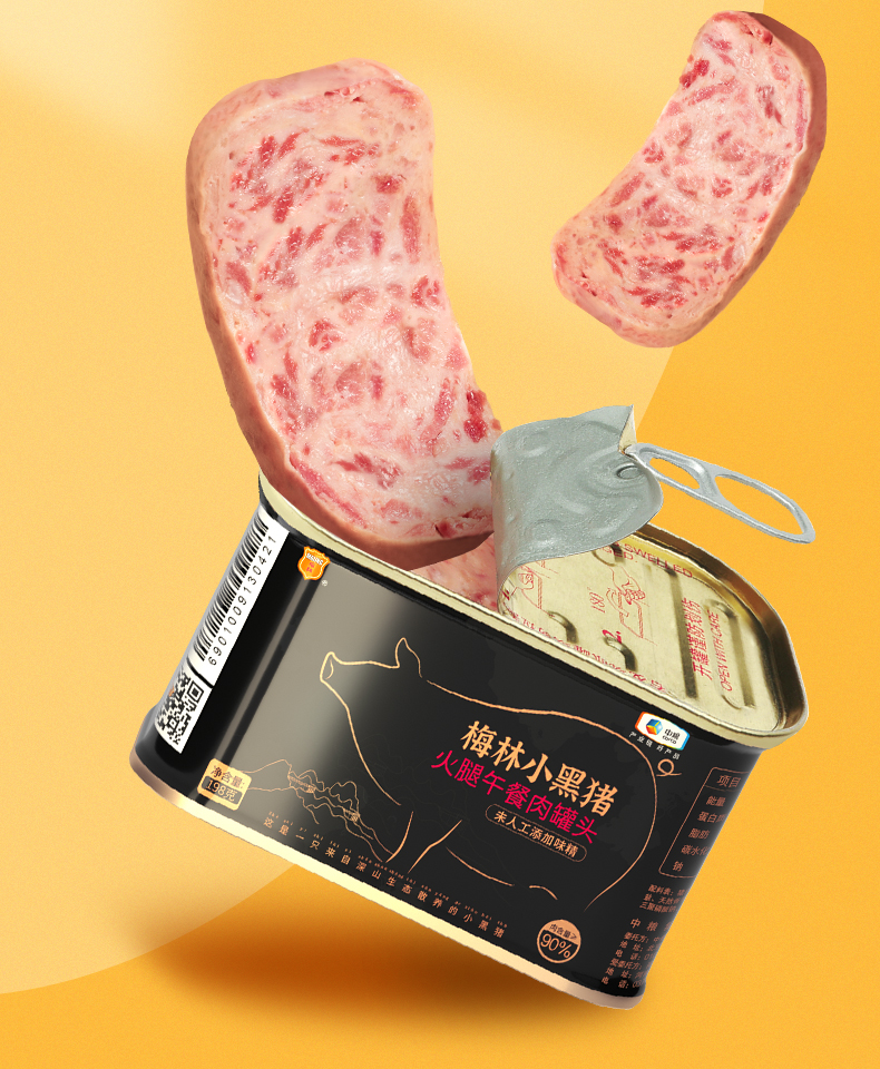 精选深山生态散养小黑猪,后腿肉制作肉含量>90%,看的见的猪肉颗粒,肉质Q弹,鲜香味美,降低盐量,高温处理,无菌真空封罐,无防腐剂,适合涮火锅、做三明治、炒菜等多样吃法。规格:198g*3罐