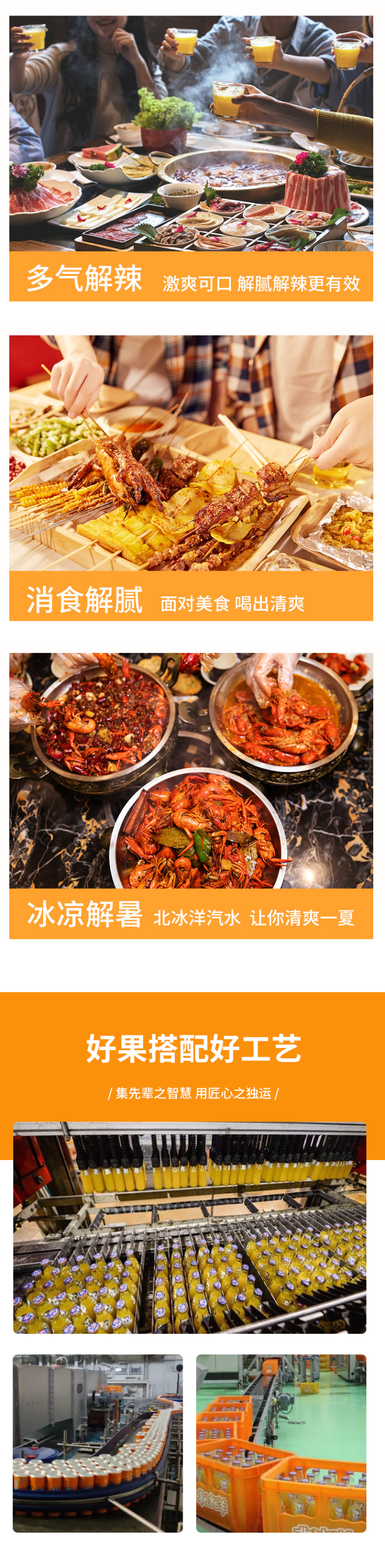 北冰洋的优势在于它是一个真正的果汁汽水,汽水中加入了新鲜研磨的大红袍桔酱和从桔子皮里提取的桔油。要是细细看,北冰洋的汁是浊的,轻微晃动后,桔茸会上浮后下沉。