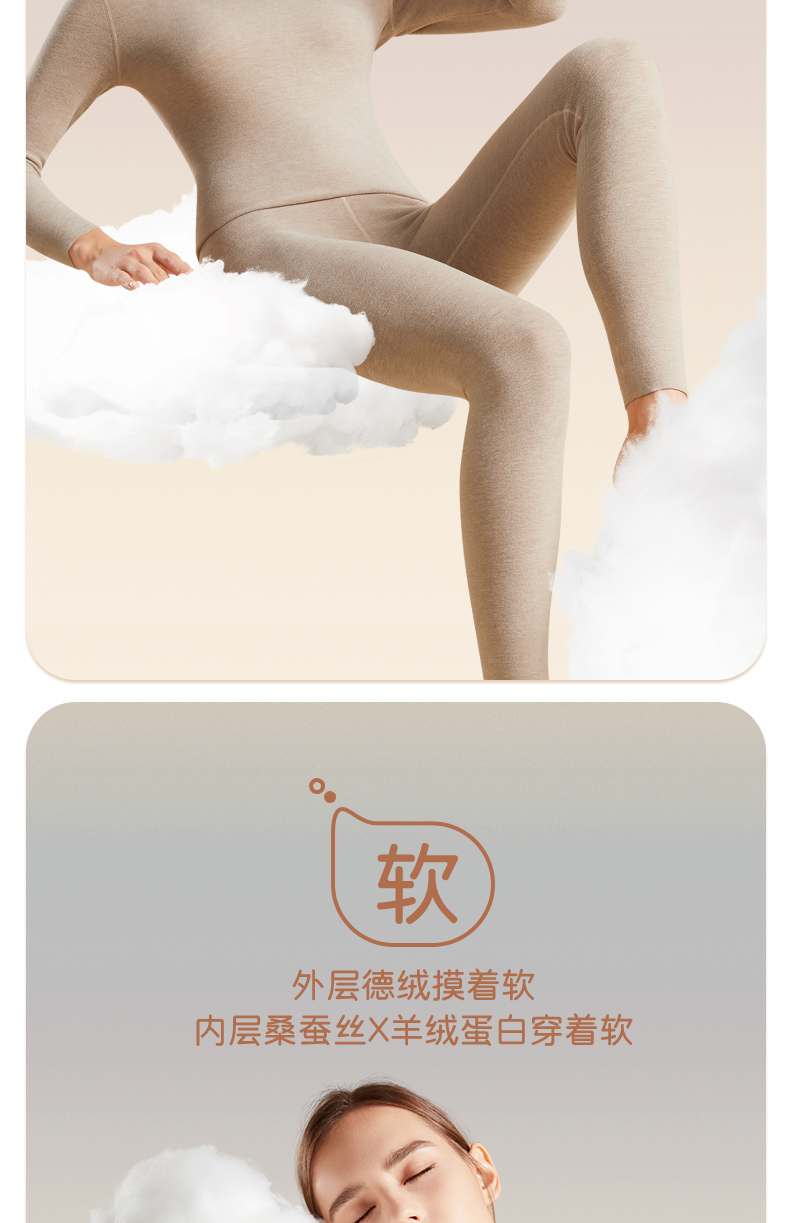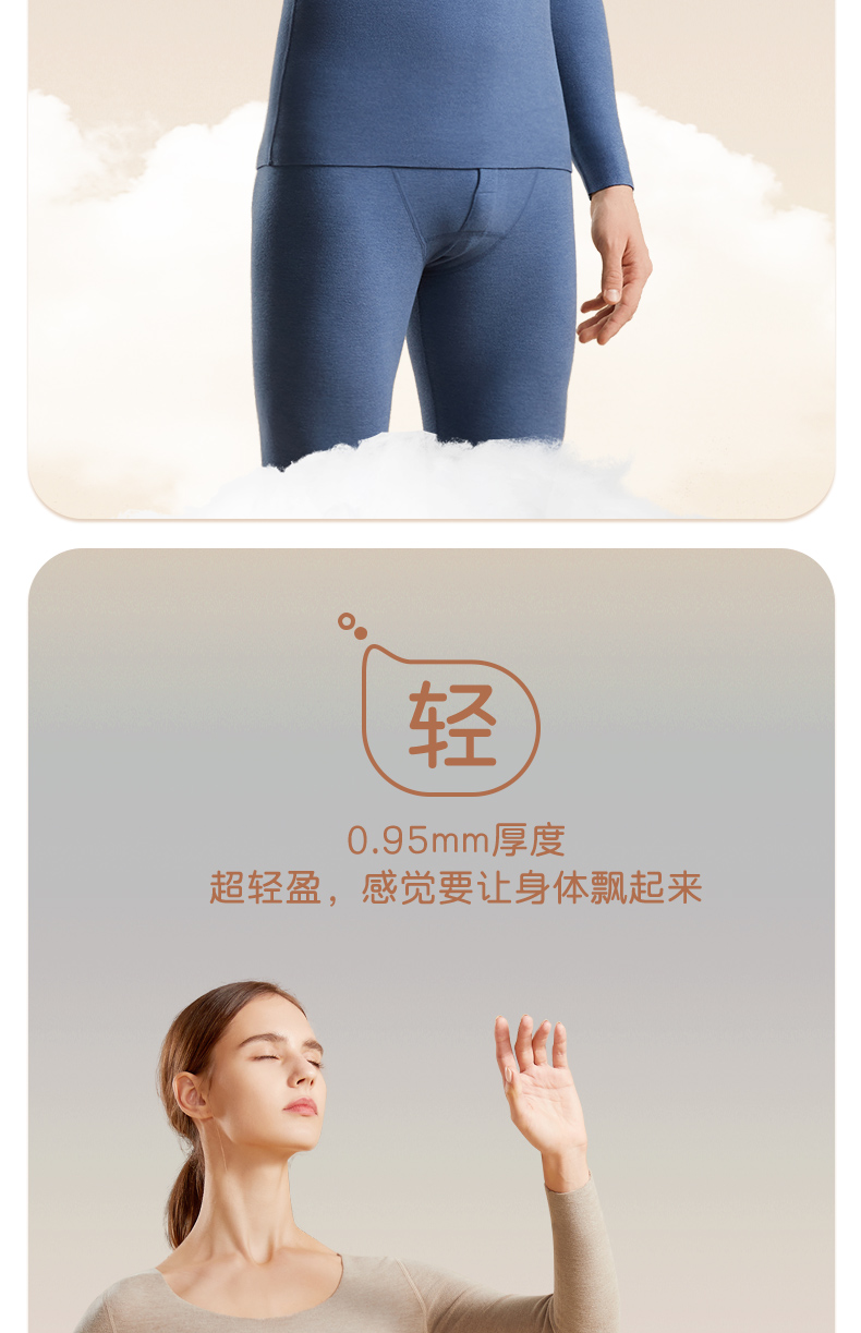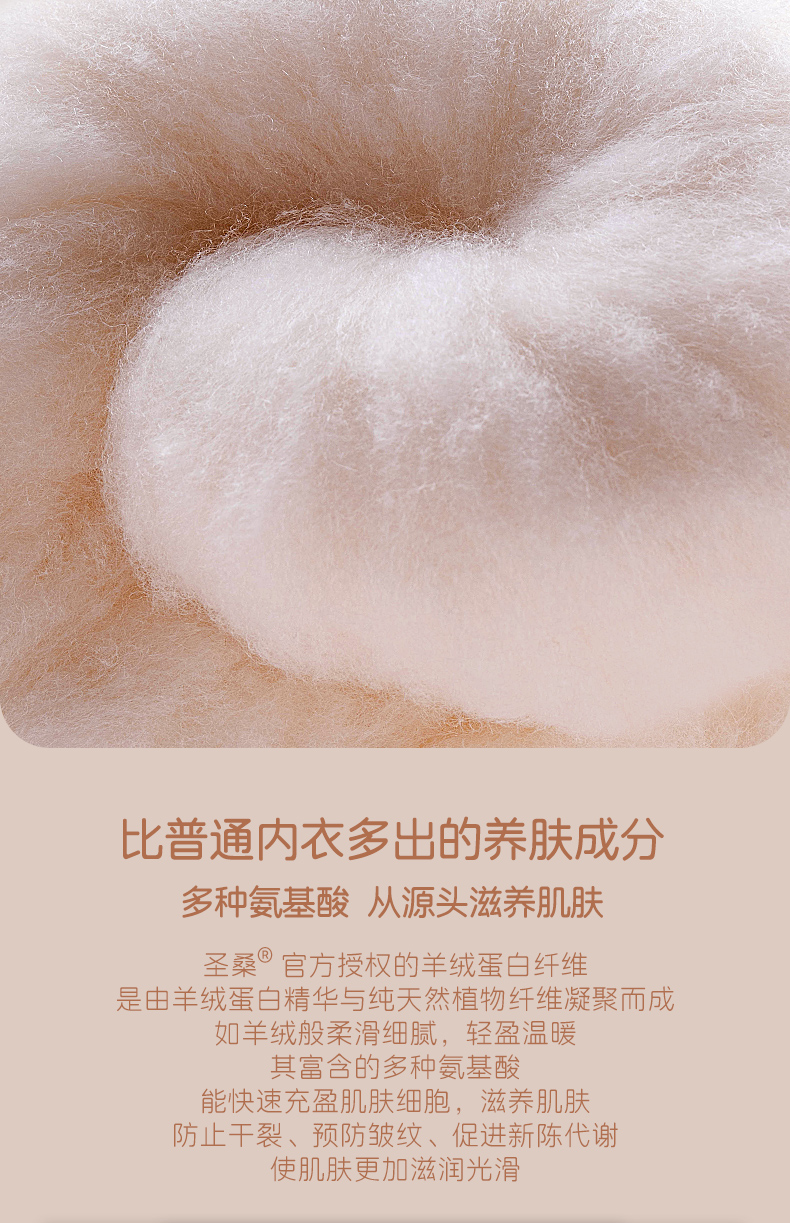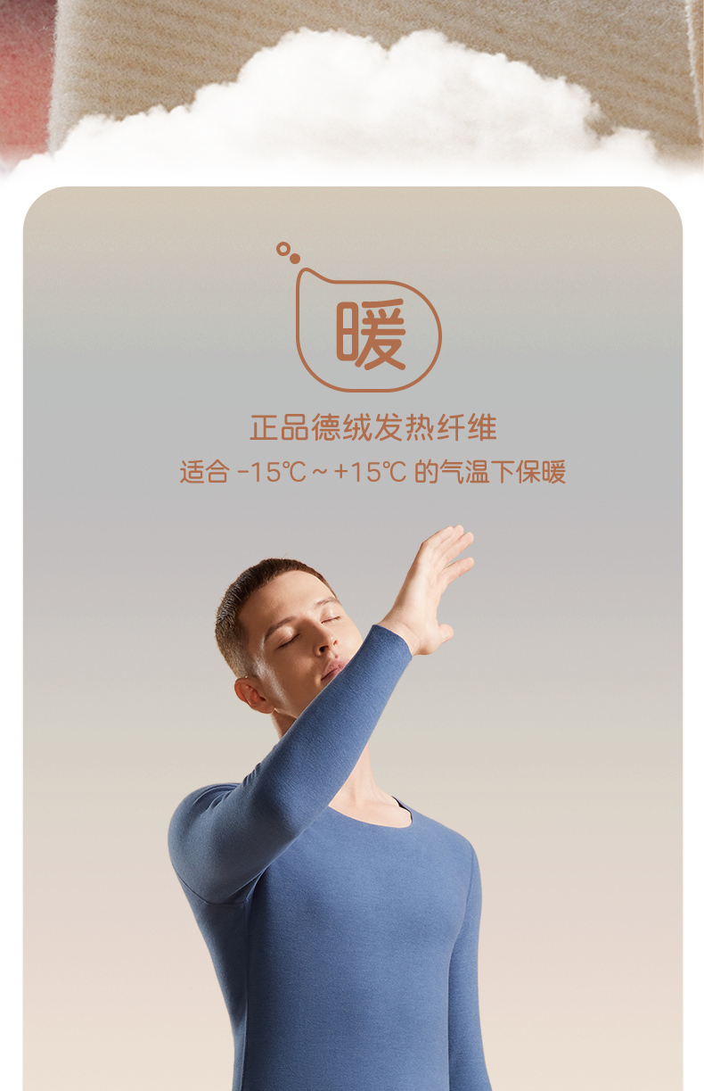 德国拜耳腈纶有称“德绒”发热纤维,可以吸收人体皮肤呼出的湿气并将其转化为热能,实现37度恒温自发热的效果。而腈纶又被称为“人造羊毛”,在舒适度上,要高于棉和莫代尔,仅次于纯羊毛、 蚕丝等高档面料,拥有羊毛轻盈细腻的特点,穿着不压沉,是理想的贴身衣物面料之一。