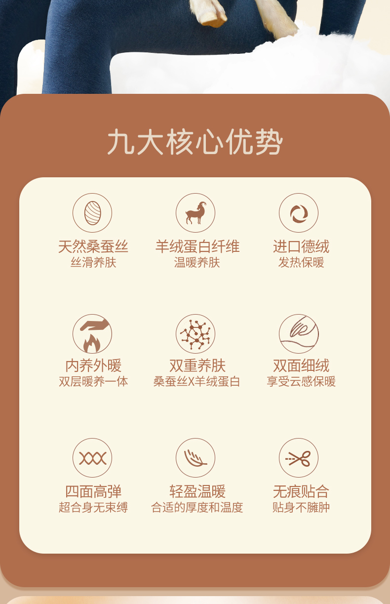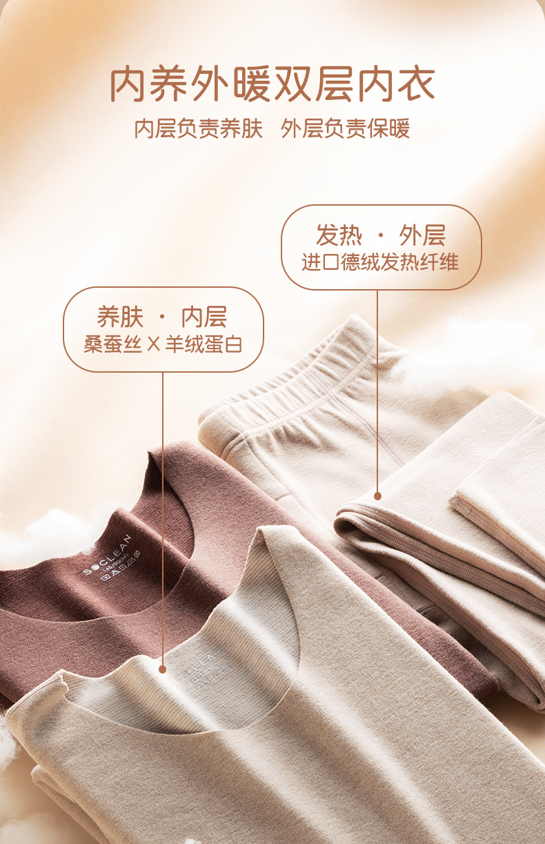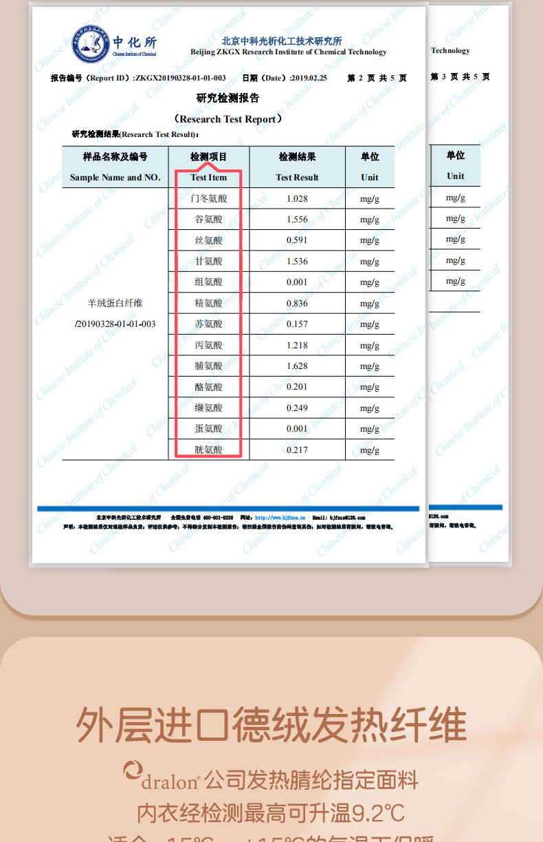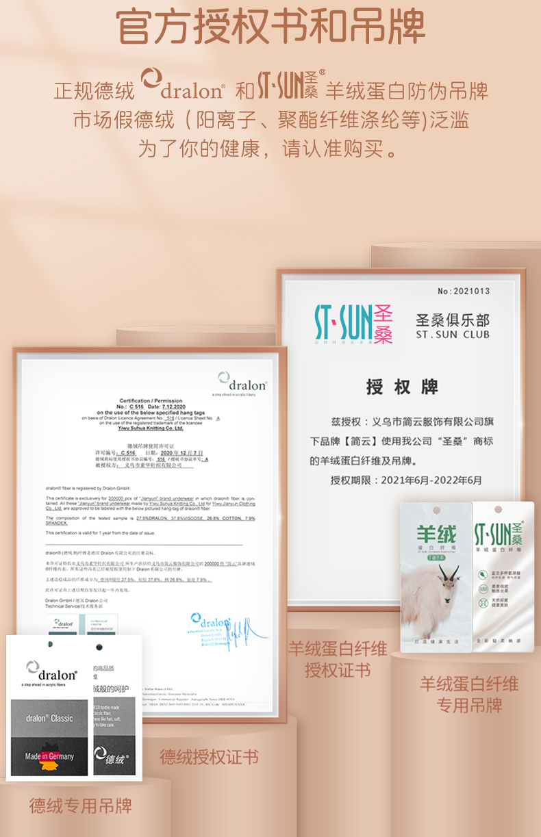 德国拜耳腈纶有称“德绒”发热纤维,可以吸收人体皮肤呼出的湿气并将其转化为热能,实现37度恒温自发热的效果。而腈纶又被称为“人造羊毛”,在舒适度上,要高于棉和莫代尔,仅次于纯羊毛、 蚕丝等高档面料,拥有羊毛轻盈细腻的特点,穿着不压沉,是理想的贴身衣物面料之一。