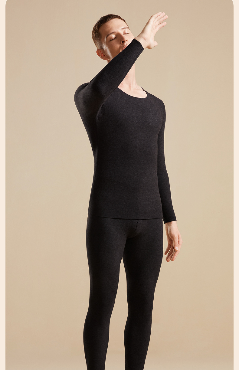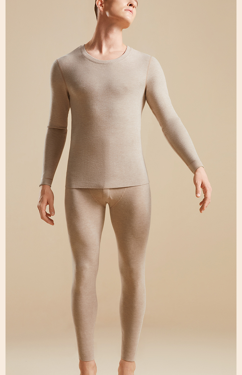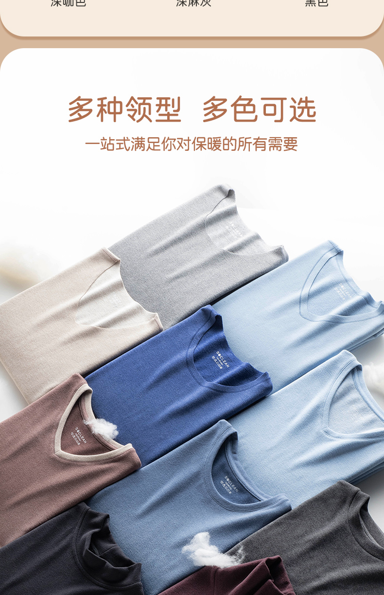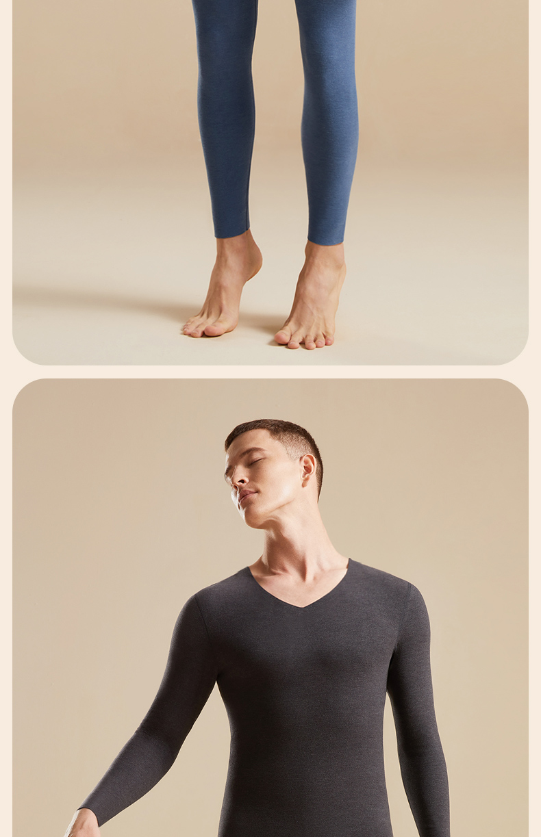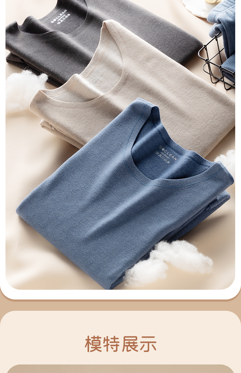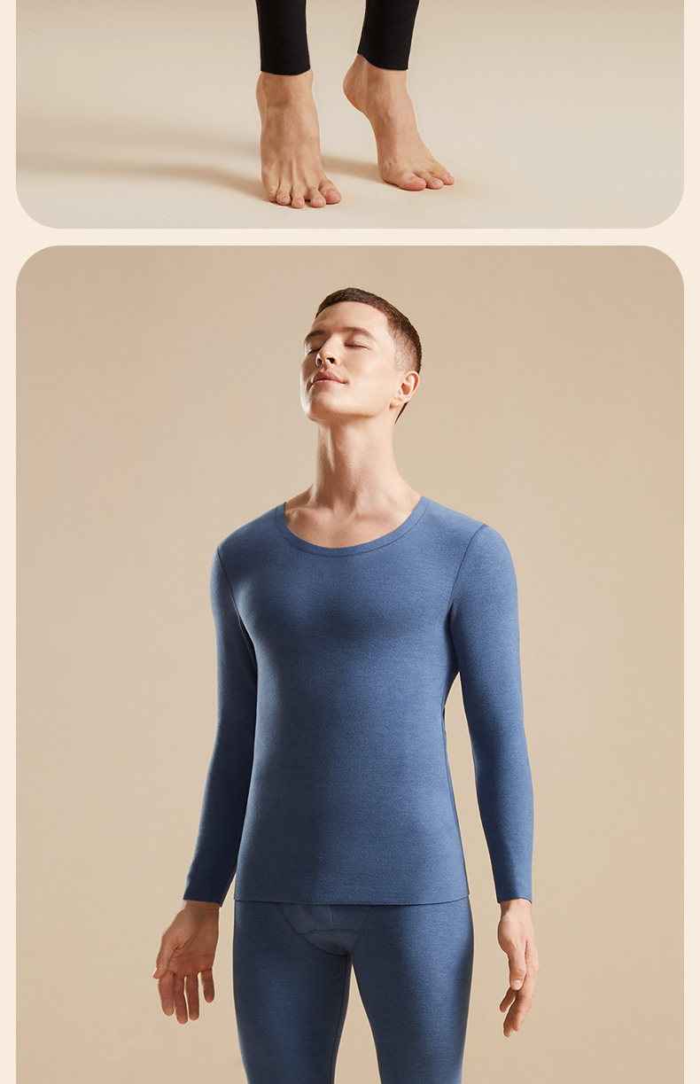 这款保暖内衣,面料采用粘纤37.8%、腈纶27.5%、棉26.8%、氨纶7.9%四种纤维混纺,面料有着比棉更柔软的触感,且吸湿性好,穿着透气舒适,不易起皱,双面磨绒处理贴身穿着保暖更舒适;