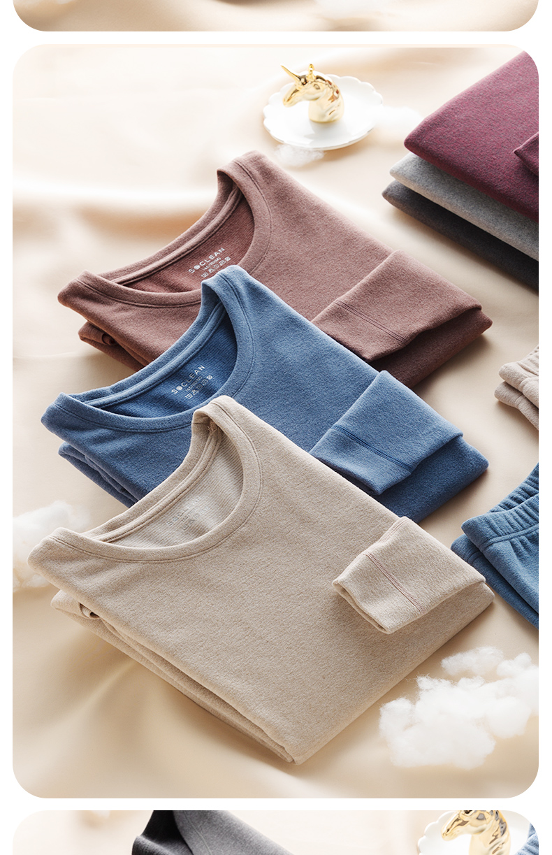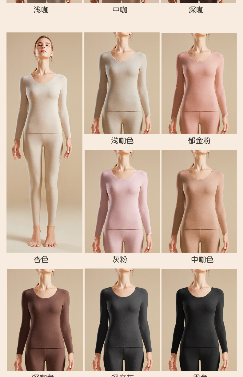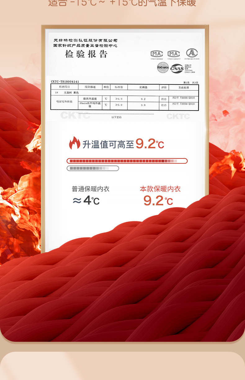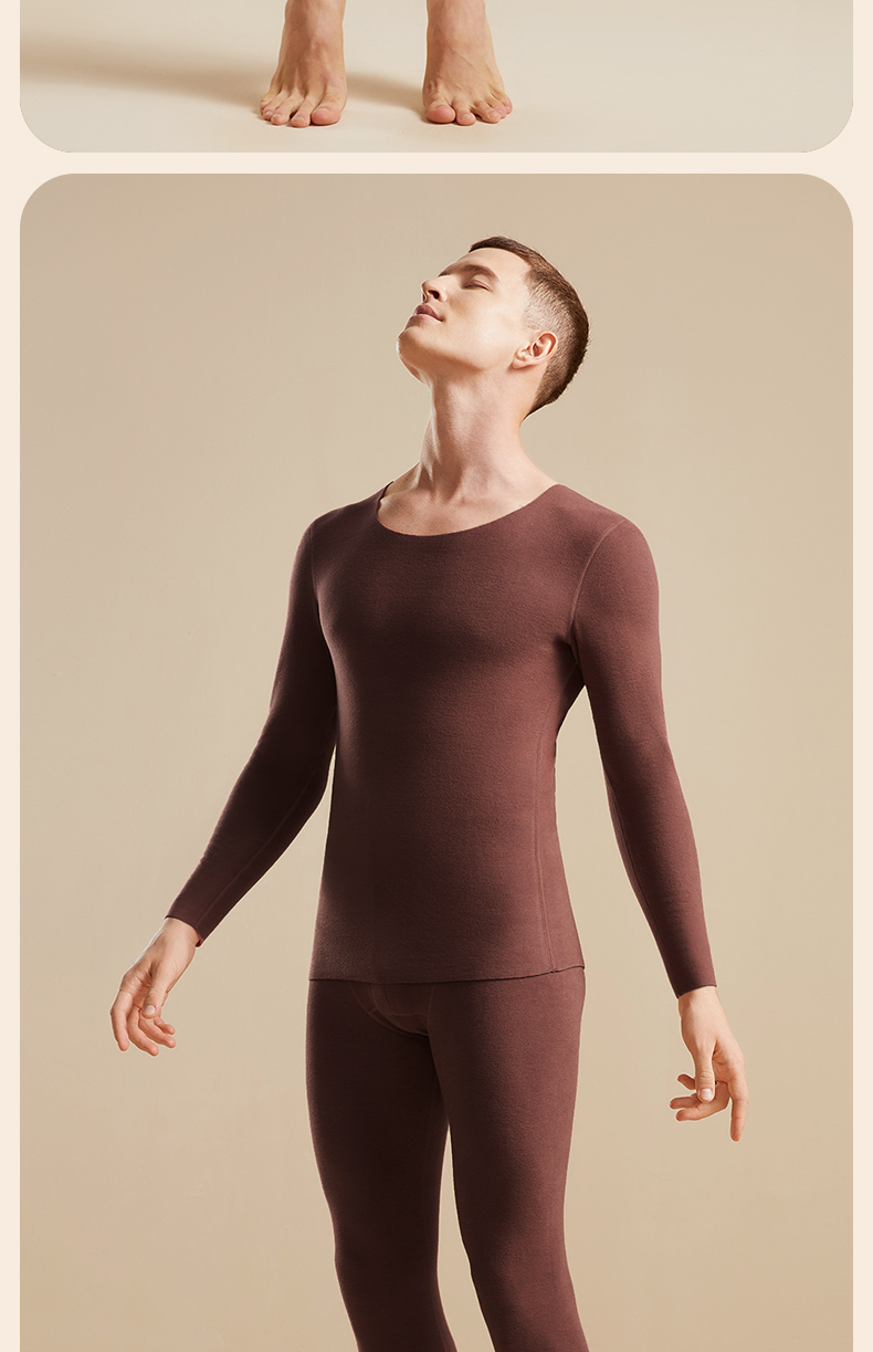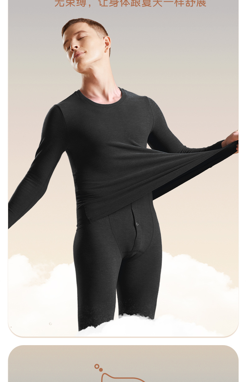 这款保暖内衣,面料采用粘纤37.8%、腈纶27.5%、棉26.8%、氨纶7.9%四种纤维混纺,面料有着比棉更柔软的触感,且吸湿性好,穿着透气舒适,不易起皱,双面磨绒处理贴身穿着保暖更舒适;