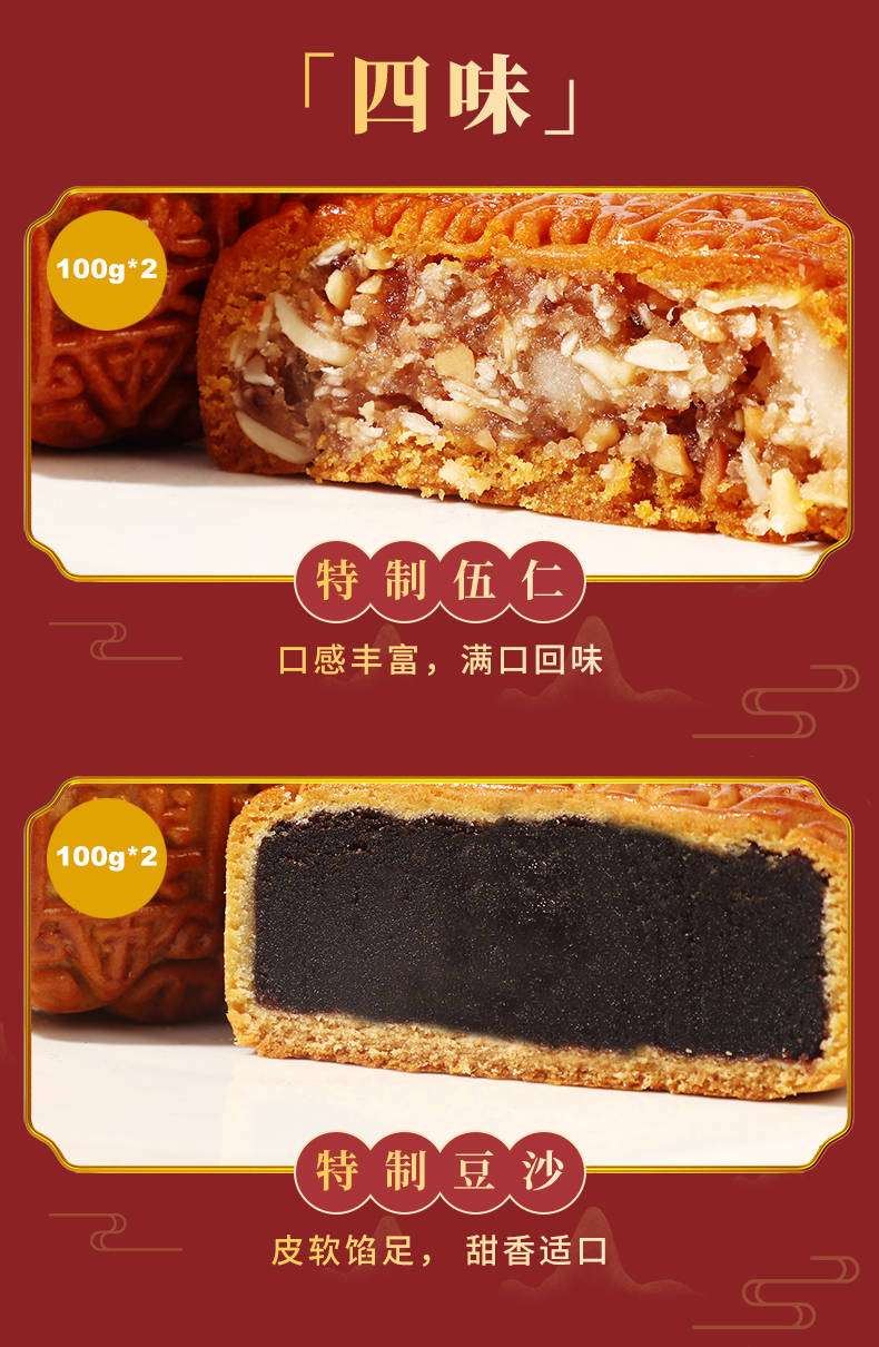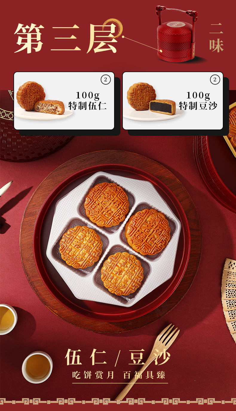 第三层 特制五仁 100g*2、特制豆沙 100g*2.
