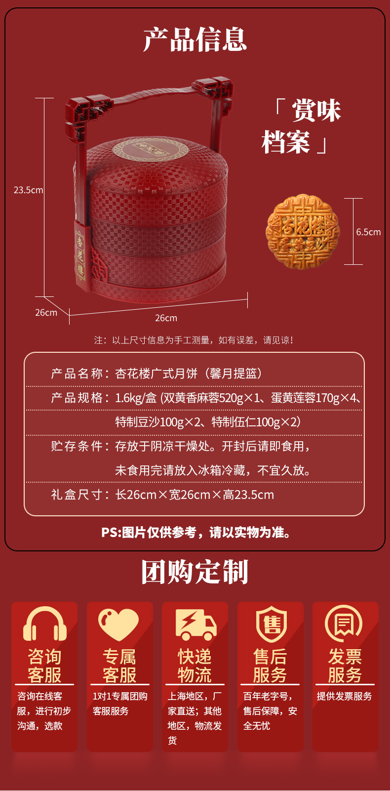 • 上海老字号 杏花楼 高档馨月提篮 月饼礼盒 9饼4味/1600g