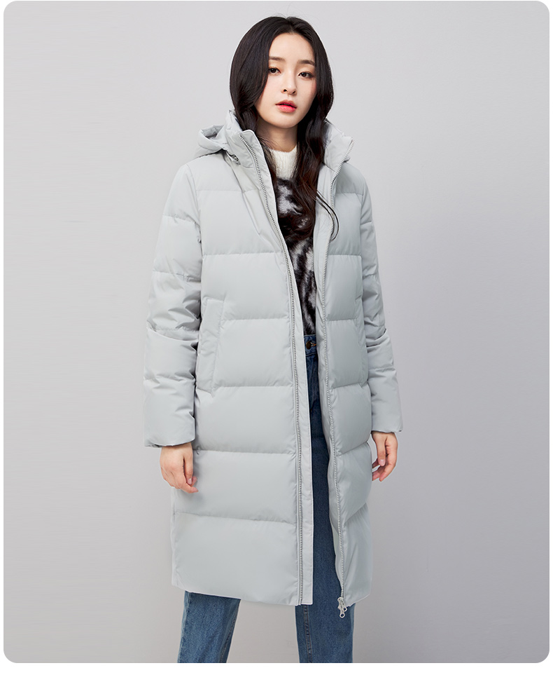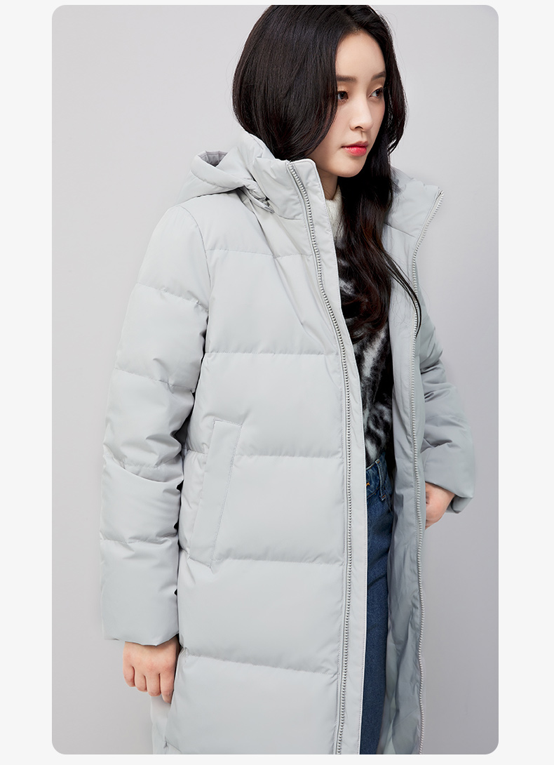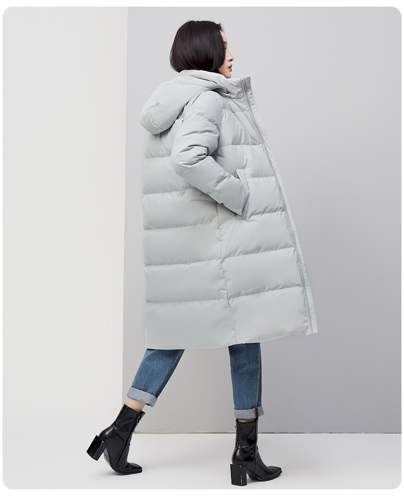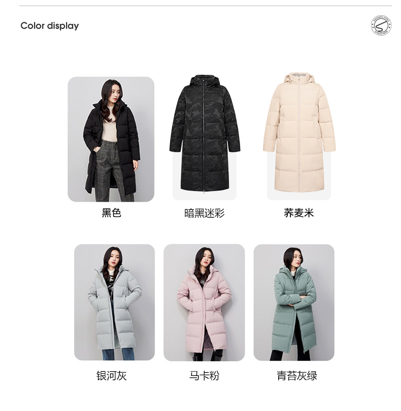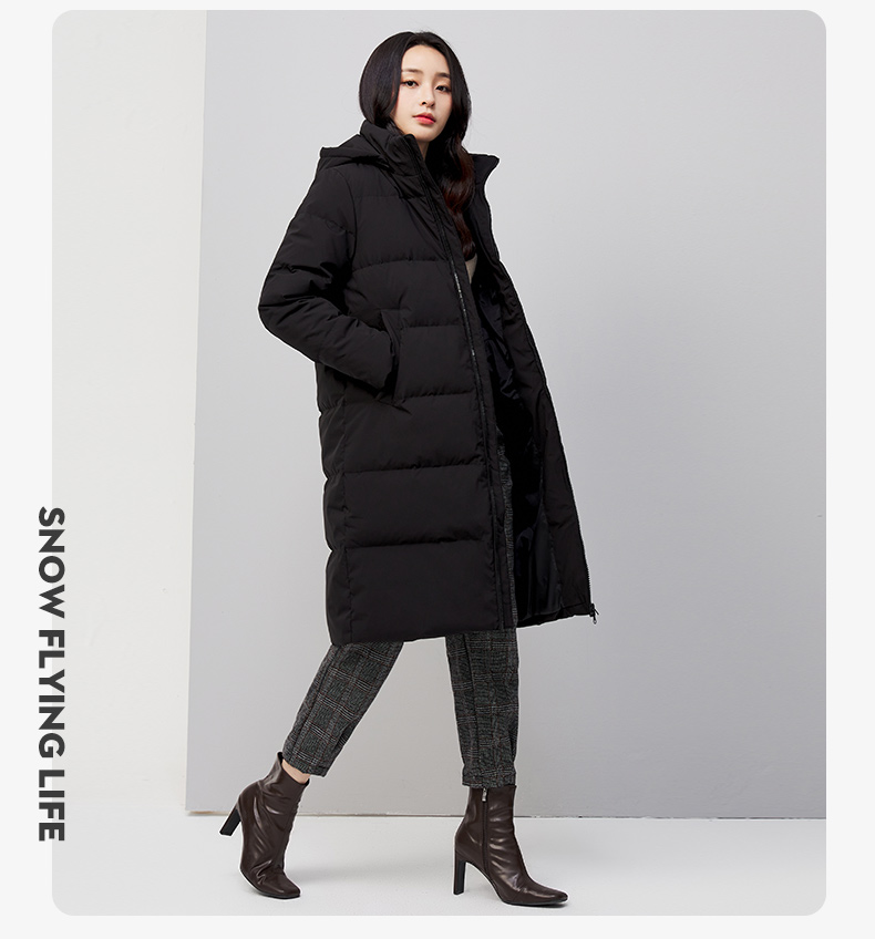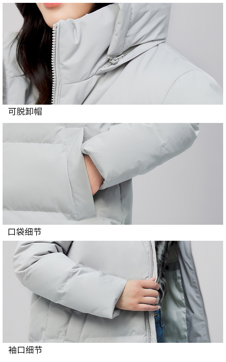 这款女士羽绒服 中长款式H版型,包容随性不挑身材,弱化了羽绒服厚重感,上身显瘦,适合各种身材MM穿着,甄选15cm+高蓬白鸭绒,90%含绒量,蓬松保暖,智能分格充绒,四层锁绒工艺杜绝钻绒烦恼。