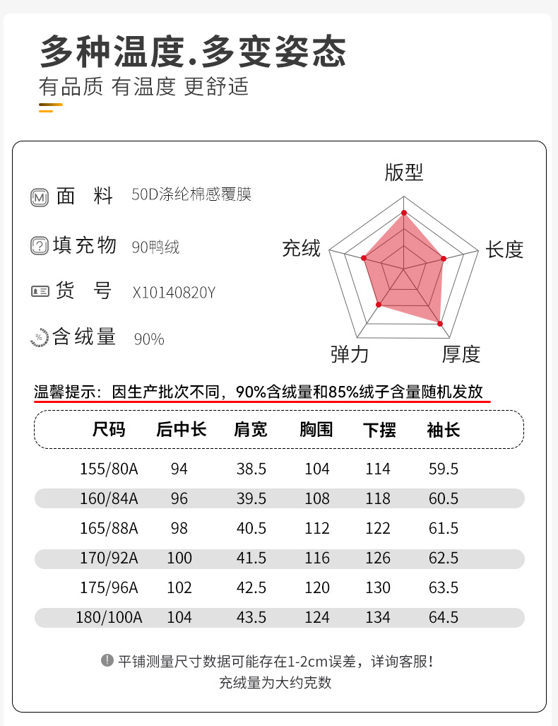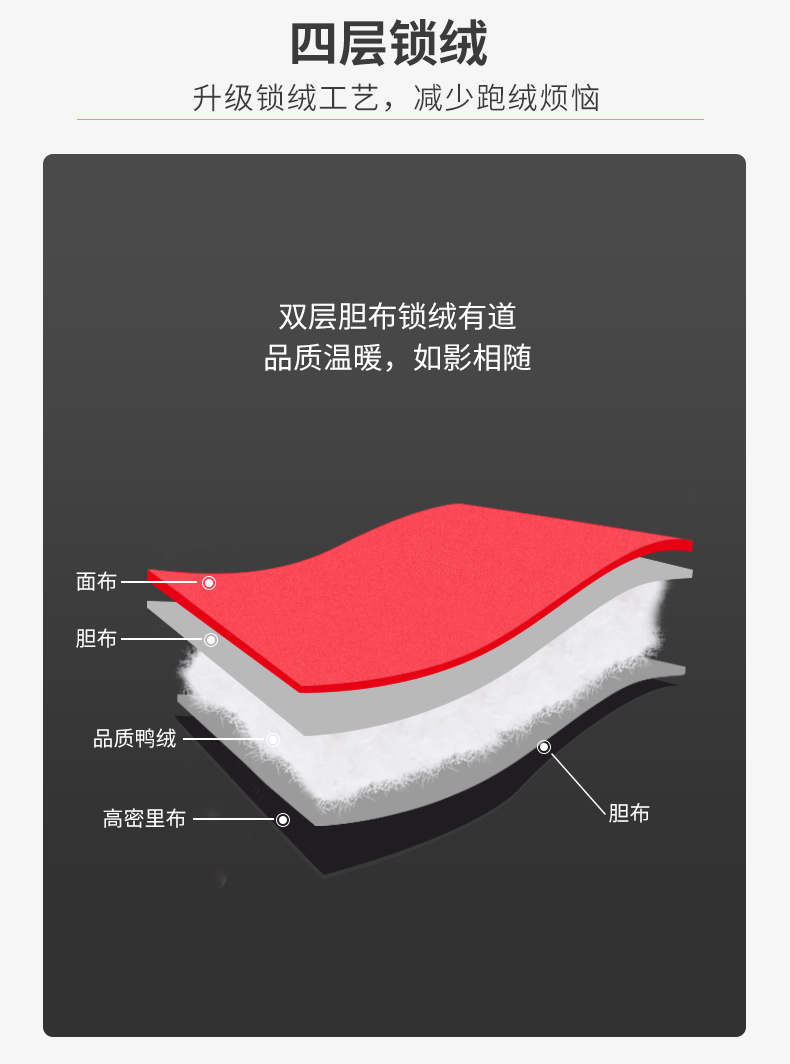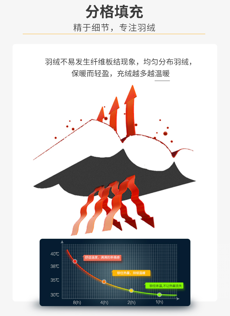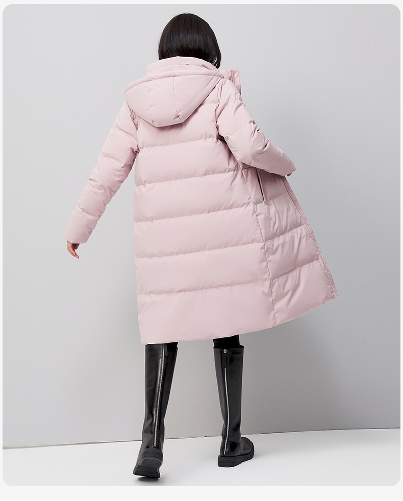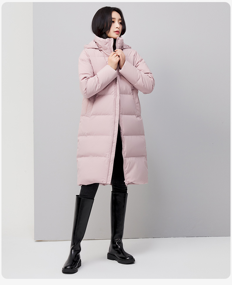 这款女士羽绒服 中长款式H版型,包容随性不挑身材,弱化了羽绒服厚重感,上身显瘦,适合各种身材MM穿着,甄选15cm+高蓬白鸭绒,90%含绒量,蓬松保暖,智能分格充绒,四层锁绒工艺杜绝钻绒烦恼。