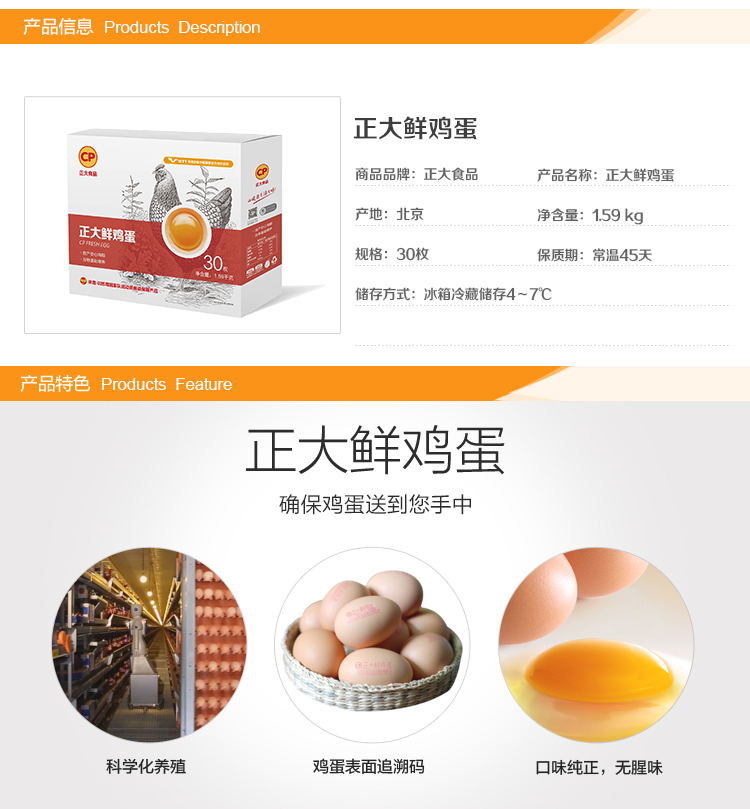 • CP正大 无抗生素 新鲜鸡蛋 大号30枚 共1.59kg