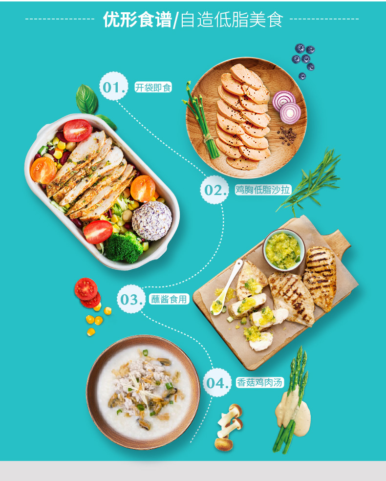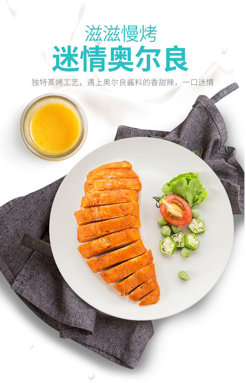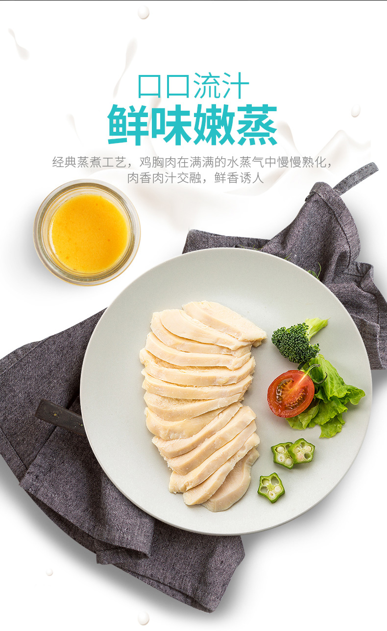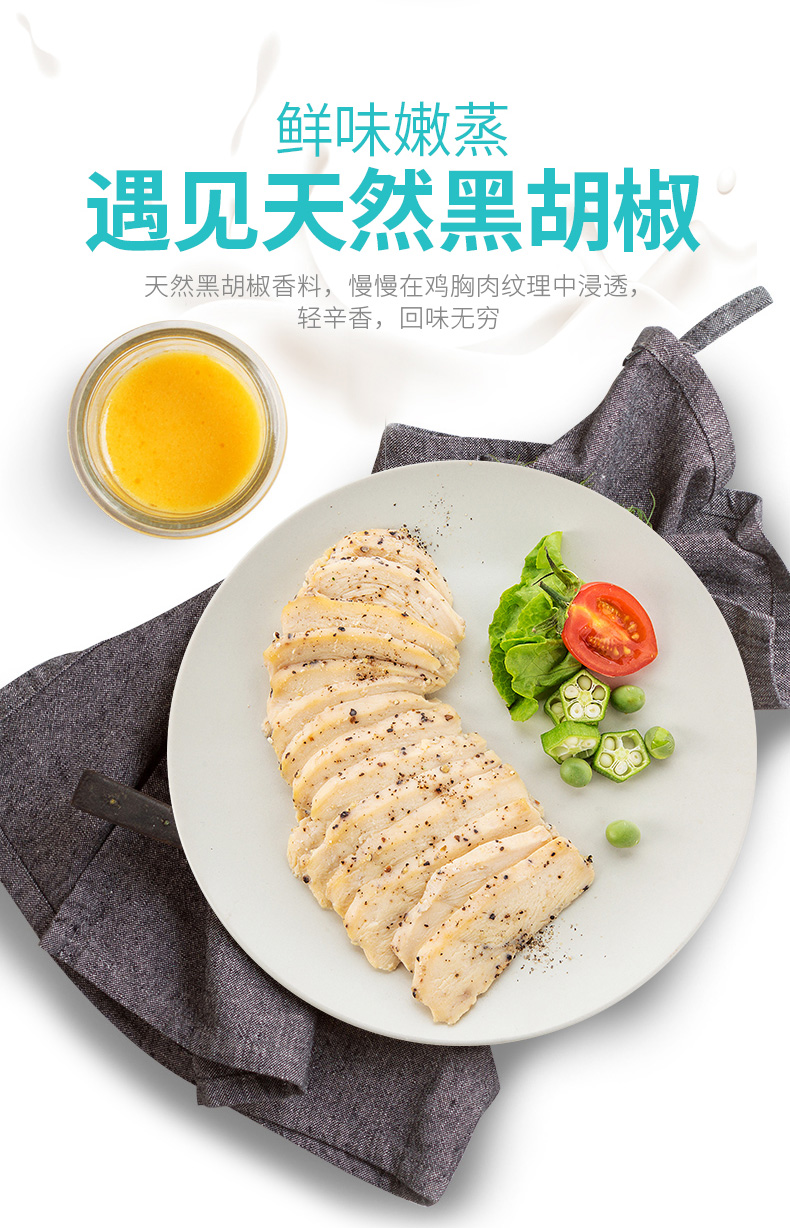 独特蒸烤工艺,鸡肉在满满水蒸气中慢慢熟化,在经过瞬时电烤技术,锁住鲜嫩肉汁,口感鲜香多汁,比普通的煎鸡胸更为鲜嫩,轻食健康,非常适合健身、控制体重人群。