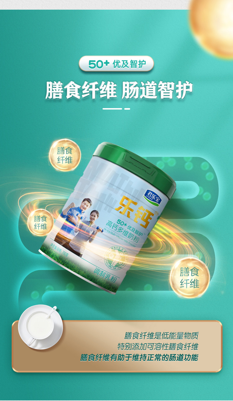 这款君乐宝 乐钙50+优及智护高钙多维中老年奶粉,采用生牛乳为第一奶基原料,产于全球公认黄金奶源带河北。配方添加了低聚异麦芽糖、钙铁锌、维生素A、维生素D、维生素E、维生素C,富含高钙、高膳食纤维、高维生素与矿物质。