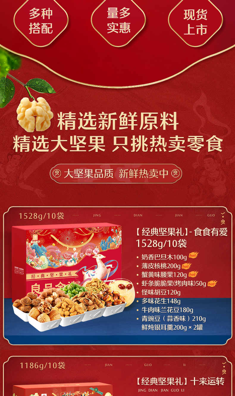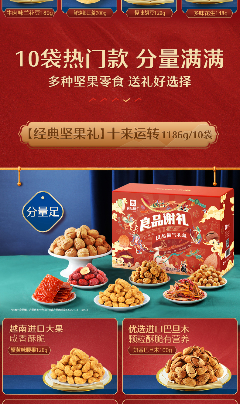 天猫良品铺子旗舰店98元,下单立减29元,可领20元优惠券,实付49元到手,热销中秋礼盒 1528/10袋(含3坚果)都是硬货,留着过节送礼或者慢慢吃都划算的很~