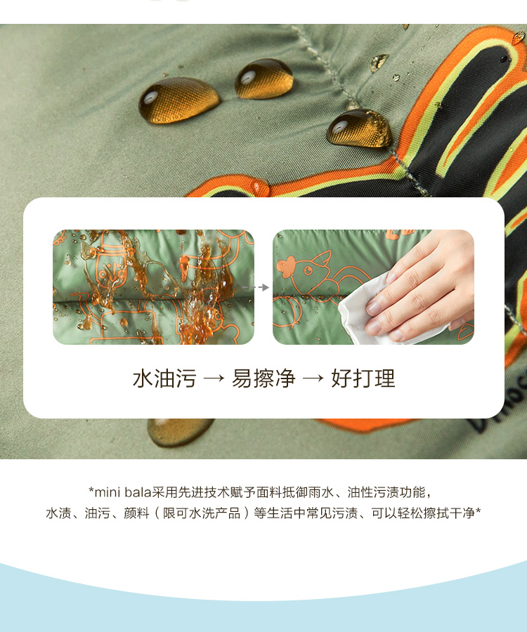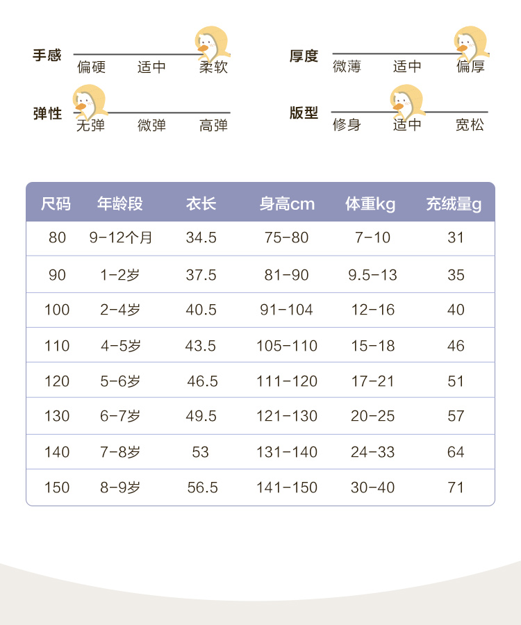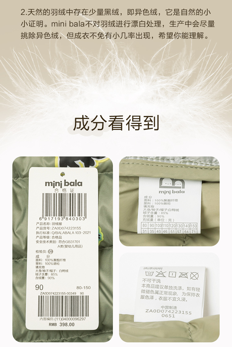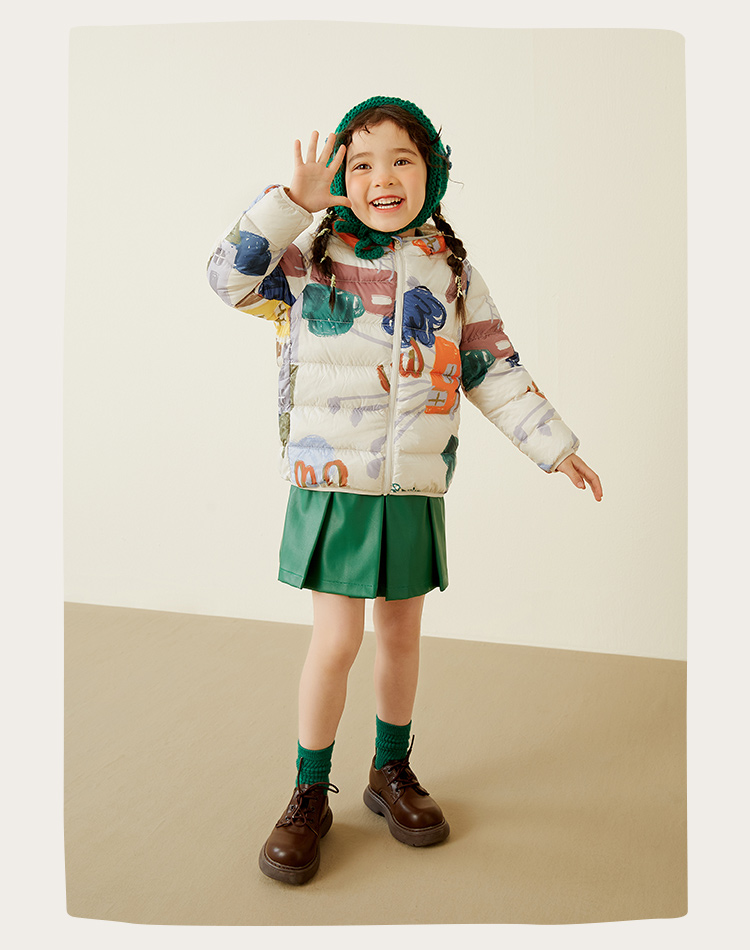 这款儿童轻薄羽绒服,防水防油污面料,色泽鲜亮,透气性好,新国标90白鸭绒,绒子含量85%,羽绒蓬松,舒适保暖,6重锁绒技术、20+道净味工序,呵护健康,无异味不跑绒,时尚卡通印花设计,充满萌趣,小朋友喜欢。内置收纳袋,轻松收纳方便携带。