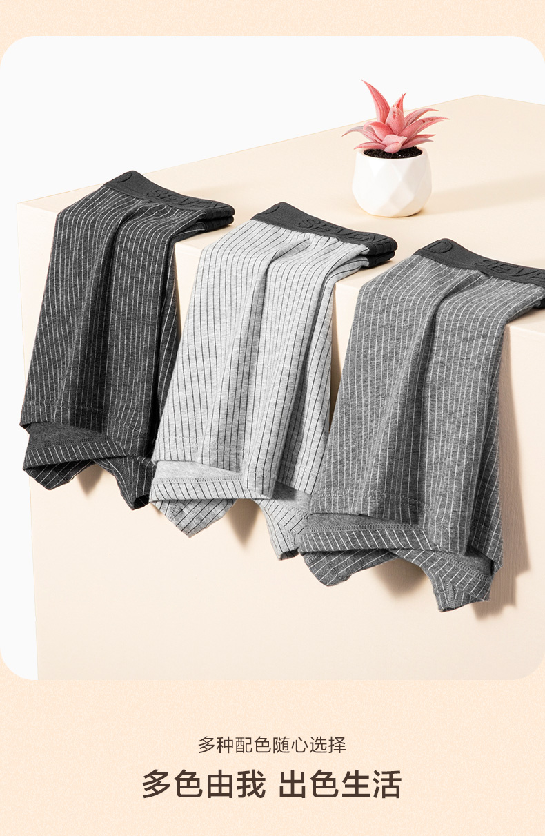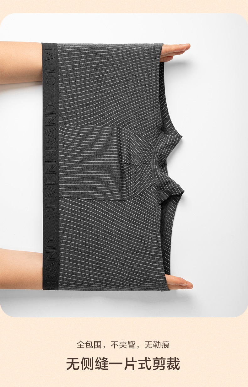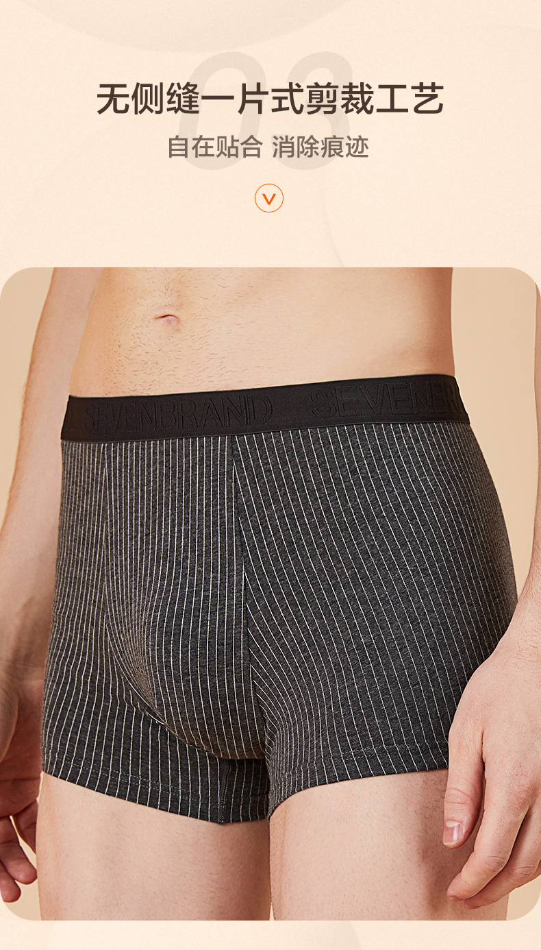 这款男士 内裤,采用95.8%新疆长绒棉+4.2%氨纶混纺,并采用50支高支工艺织成,相比普通棉,手感柔软细腻,吸湿性和透气性良好,不易起球褶皱,穿着亲肤舒适。