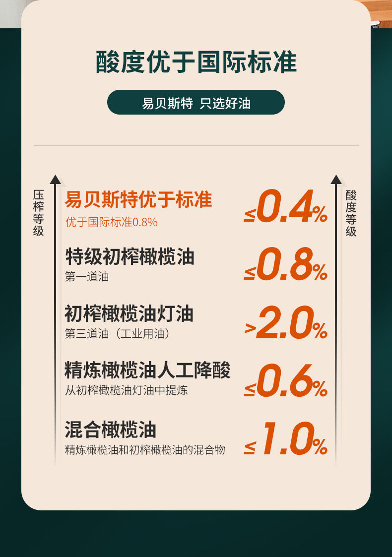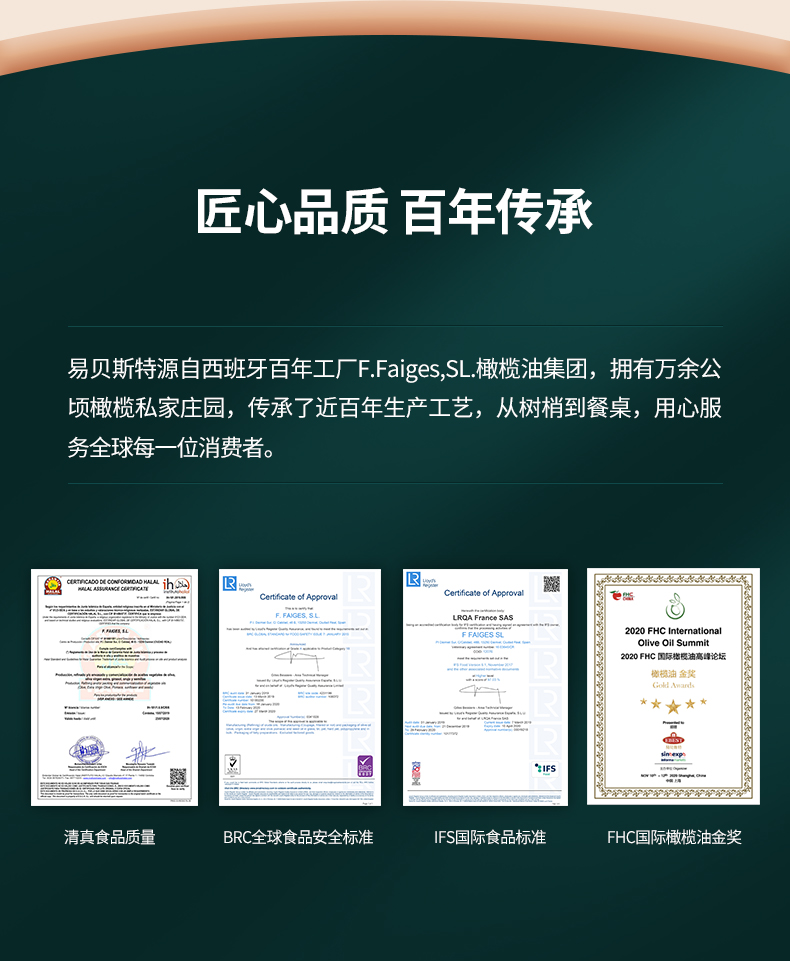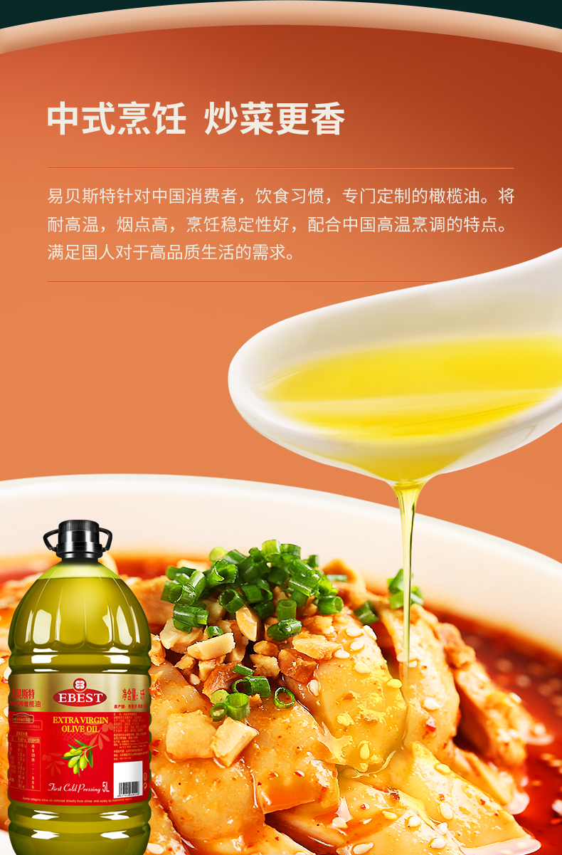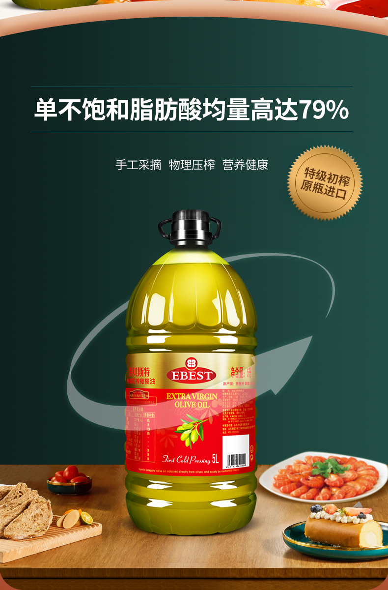 西班牙大使馆推荐品牌,易贝斯特源自西班牙百年工厂F.Faiges,SL.橄榄油集团,拥有万余公顷橄榄私家庄园,传承了近百年生产工艺。轻油烟,口感清淡不油腻,营养均衡,满足家庭所需,适用于全年龄段。