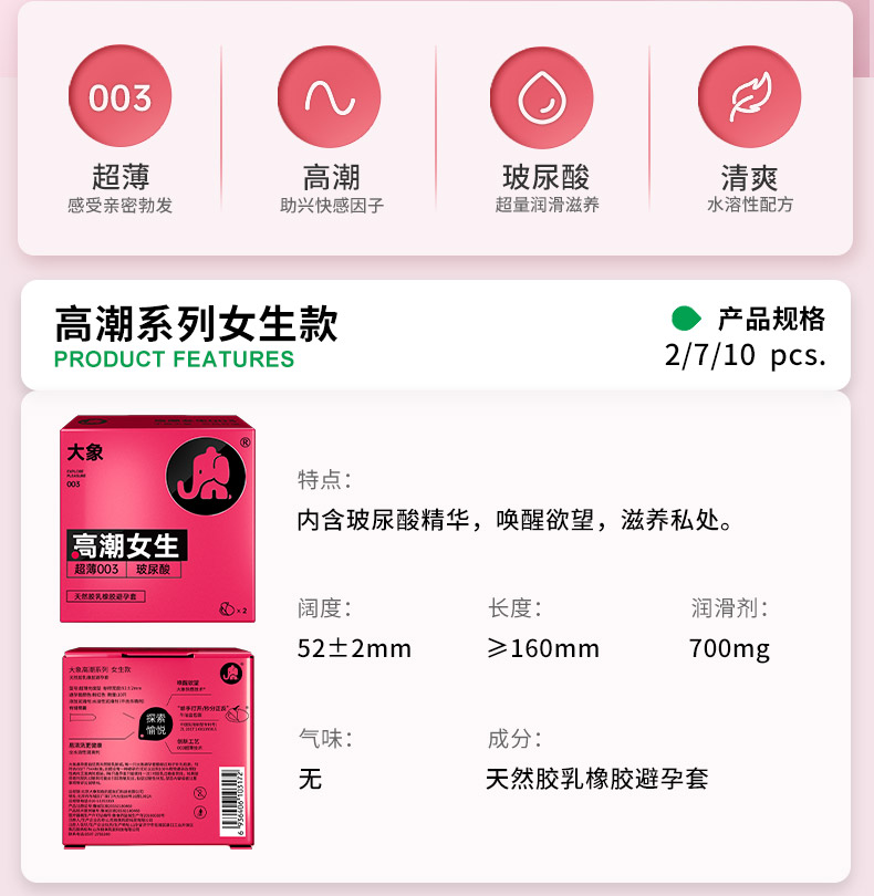 高潮女生系列 套套,采用天然乳胶材质 ,加入独特的快感因子,水润养护私处同时可加快女性荷尔蒙分泌,提升敏感度,从而带来愉悦的感官享受,可以让男女双方都获得了极大的欢愉。专利牛油盒设计,单手可开,秒分正反。