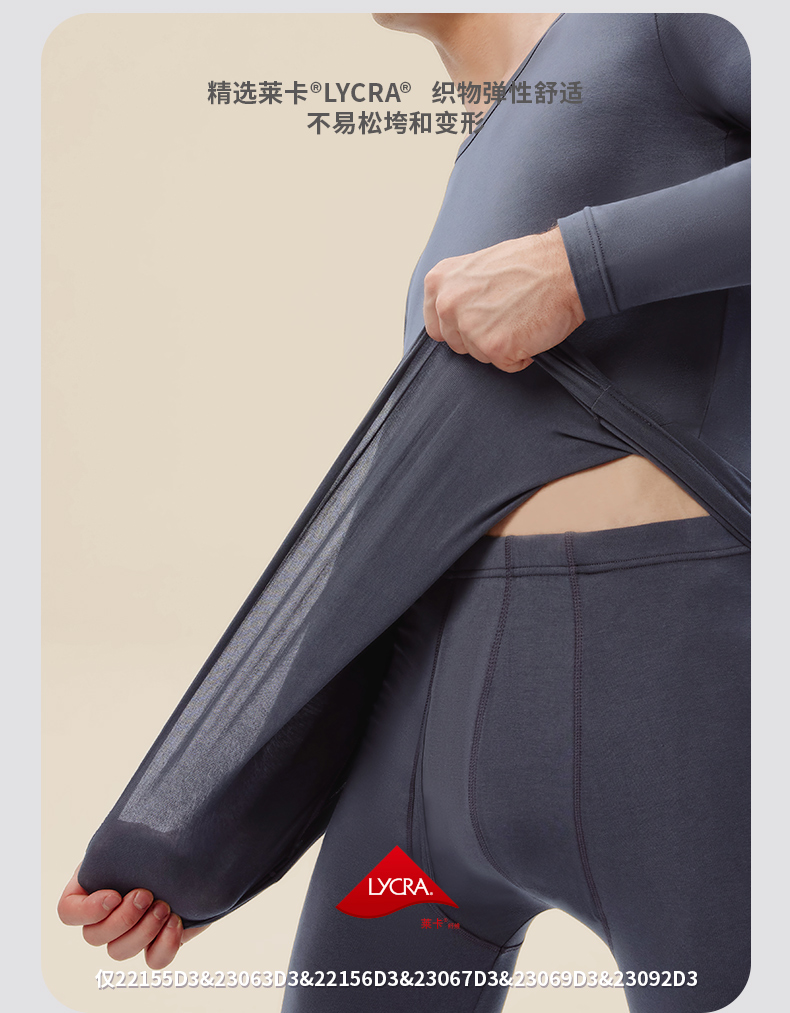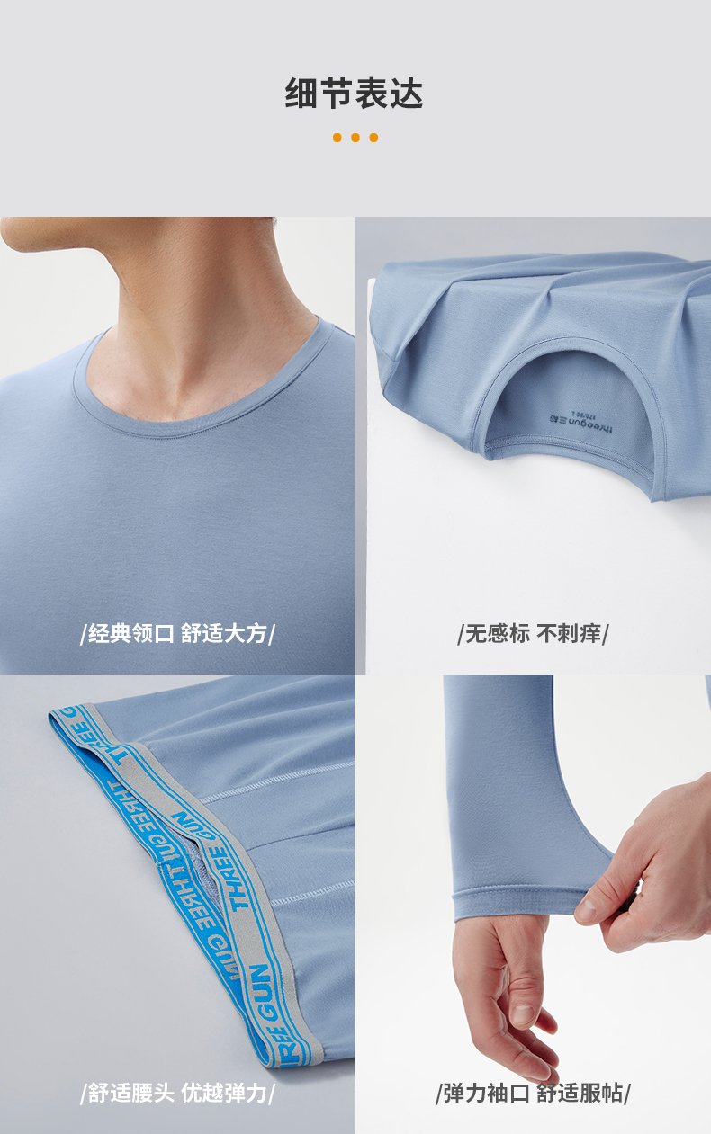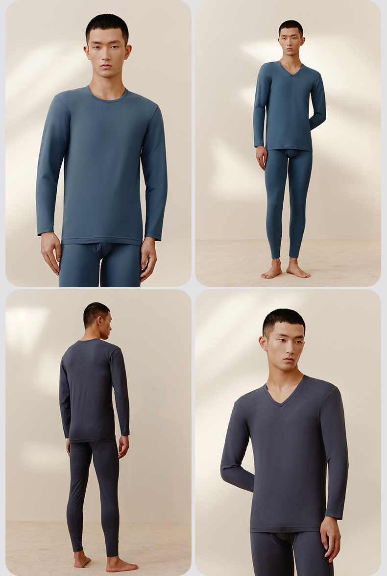 在款式和细节上,修身版型,上身保暖却不臃肿,且内搭不露出。无感标签后领,活性印染,上衣衣领袖口和裤装的裤脚,都进行了包边处理,不摩擦皮肤,提升穿着舒适度,也更耐穿。