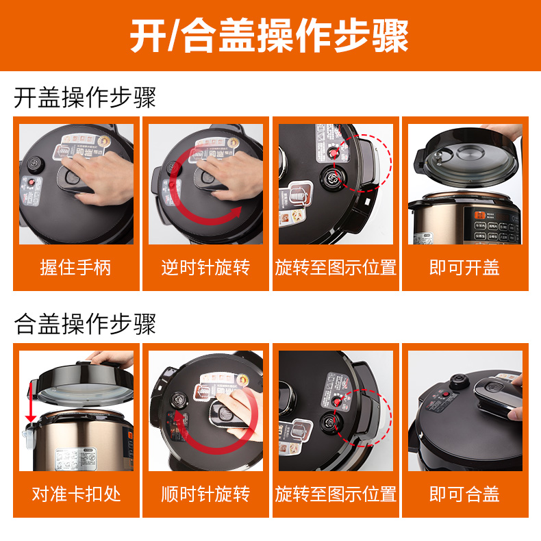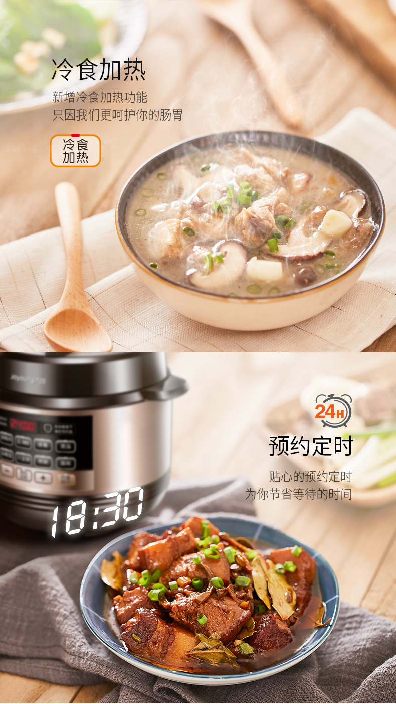 5L大容量,能满足4-5口人使用,一锅双胆,拥有12大功能菜单,24小时预约定时,可拆洗上盖板,开盖收汁,使用方便、省心。