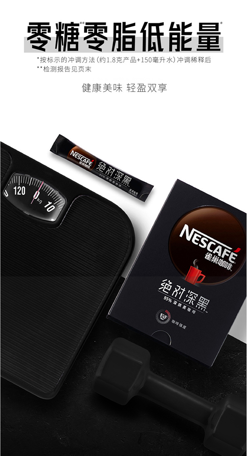 这款Nestlé 雀巢 绝对深黑即溶深度烘焙速溶黑咖啡 ,规格:30条,优选罗布斯塔豆,95%深度烘焙,超200℃高温烘焙,余香悠长,酸感骤降,本真醇苦,零糖零脂低能量。