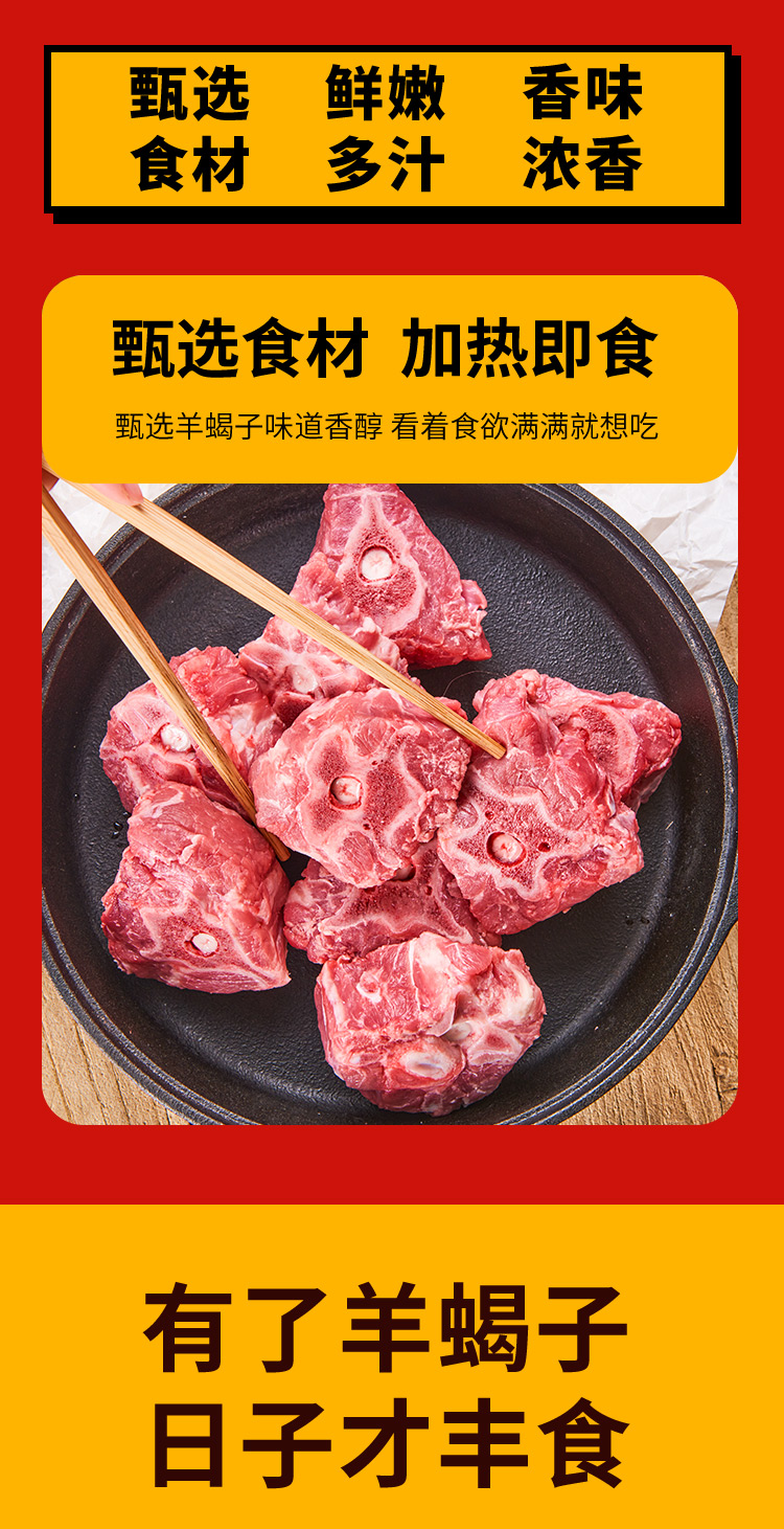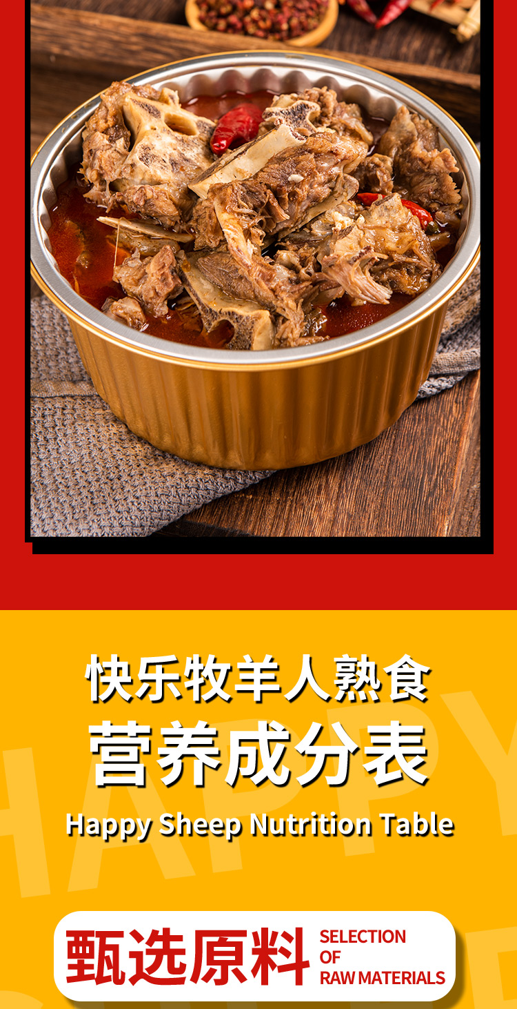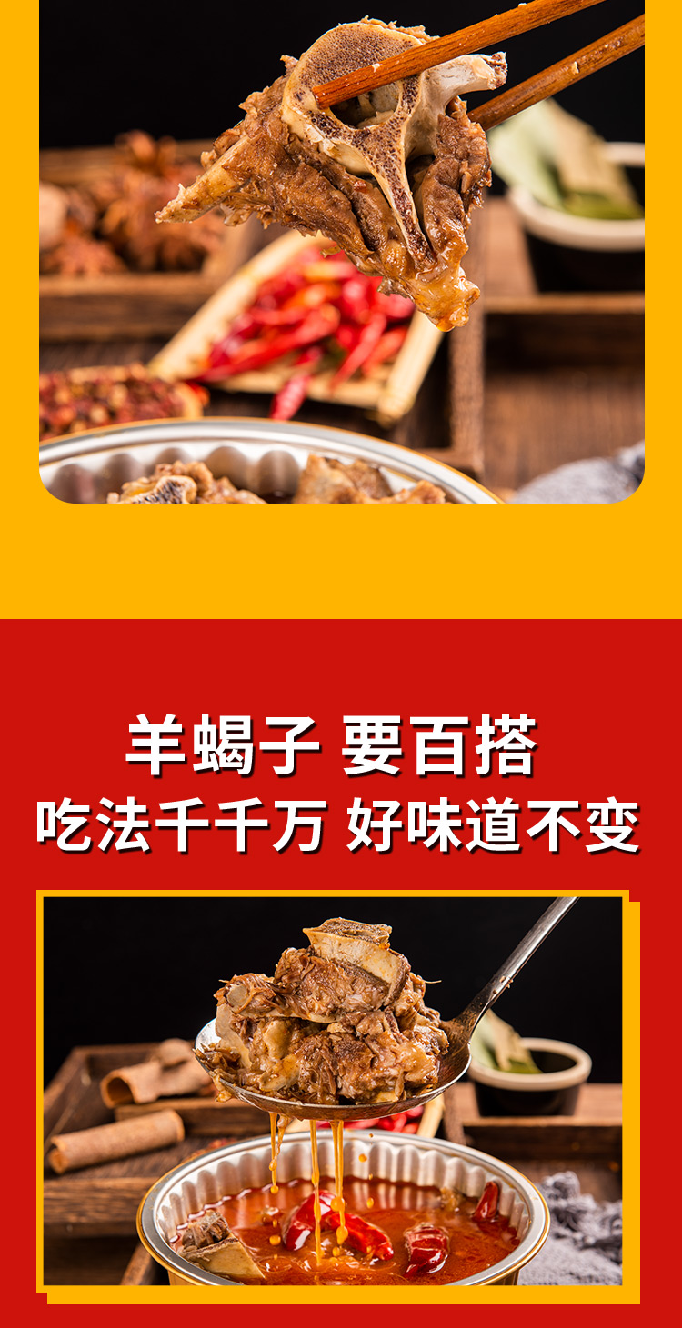 【快乐牧羊人】甄选食材,加热即食,大厨调制,甄选新鲜羊蝎子,50%固形物,味道香醇,看着食欲满满就想吃,速享美食,只需几分钟,每一口都品得到那熟悉的烟火气。