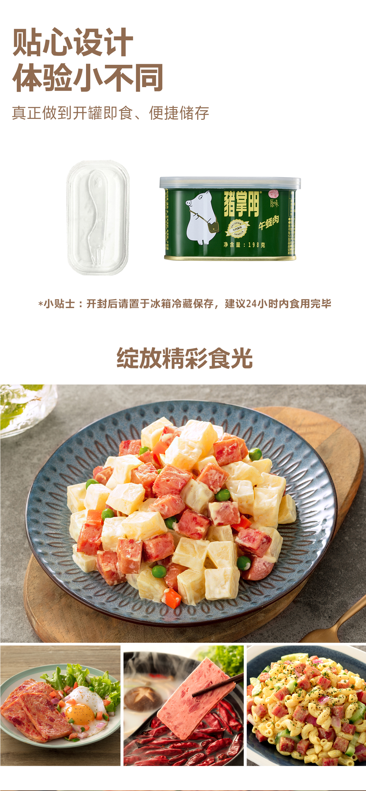 天猫猪掌门旗舰店38.8元,可领5元优惠券,实付33.8元到手;60年匠心工艺,经典传承口味,采用优鲜猪肉为原料,精确肥瘦比,传统配方,健康少盐,肉含量80%以上看的见的饱满猪肉粒,肉干紧实不散,高温灭菌锁鲜,开罐即食,涮火锅、元气早餐、配餐必备。规格为198g*3罐。
