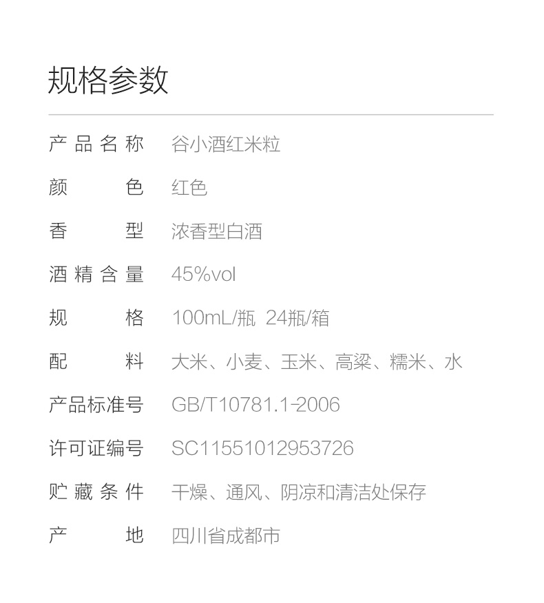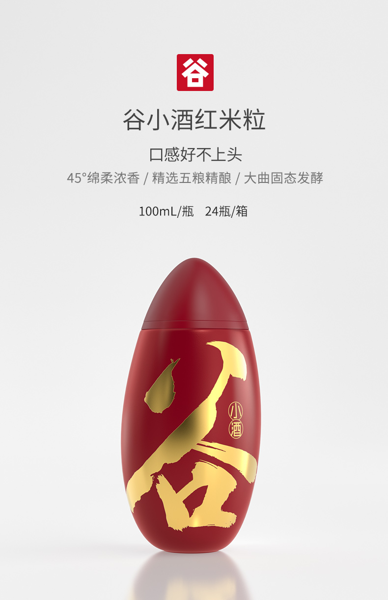谷小酒荣获2019新加坡世界烈酒大赛银奖,外包装荣获IF设计大奖,精选五粮精酿,百年古窖池大曲固态发酵,富含单宁、花青素,五年基酒贮藏,三十年老酒调味,45度绵柔浓香,闻香优雅,口感好不上头。