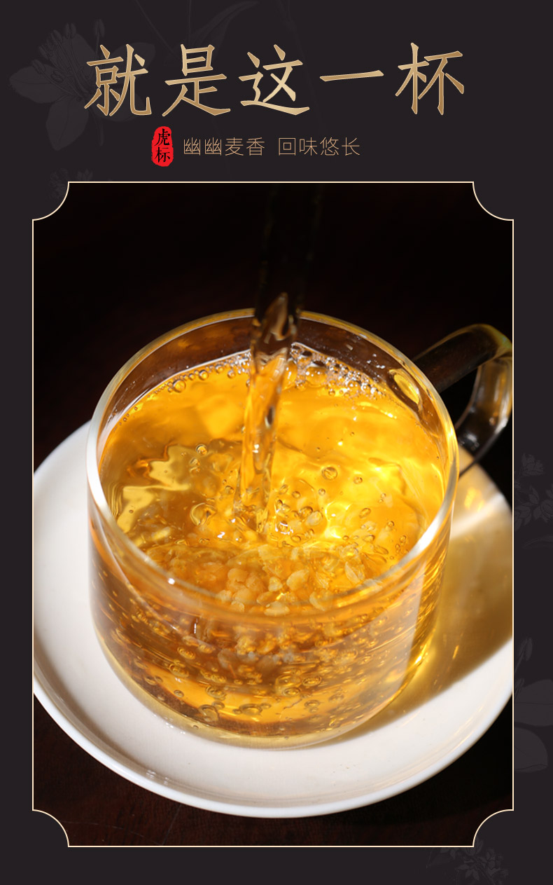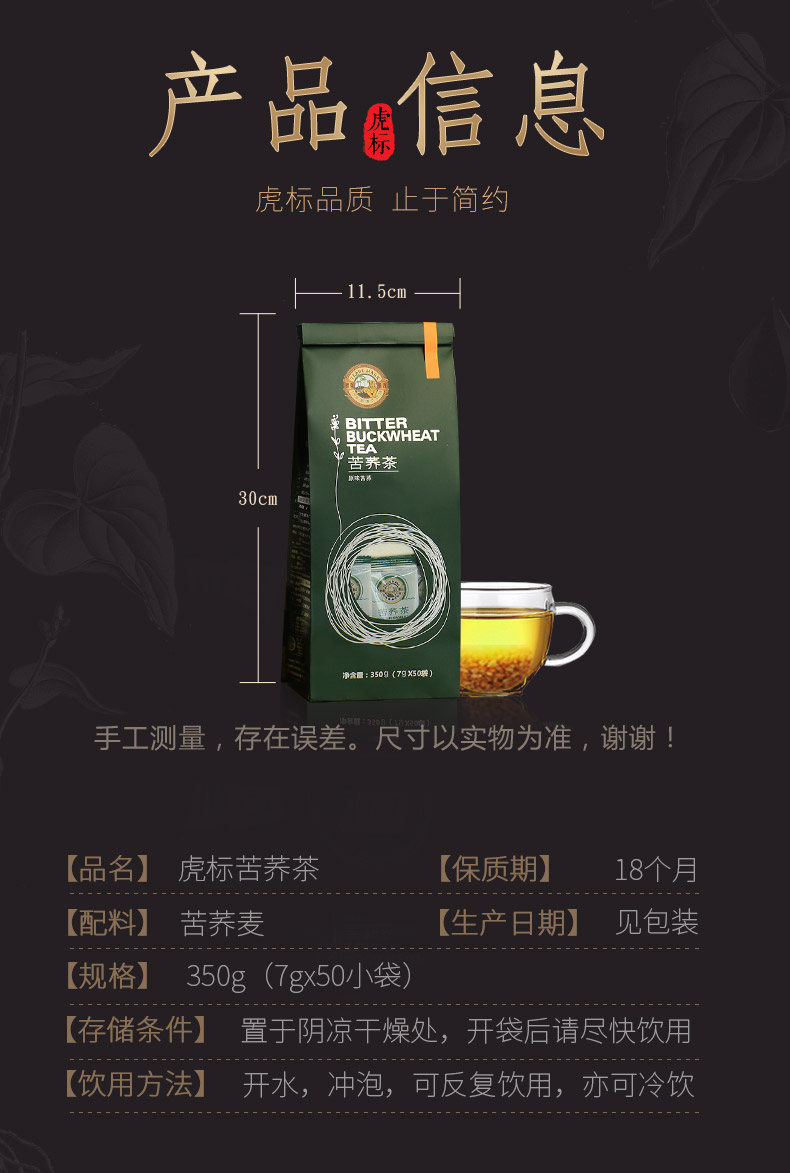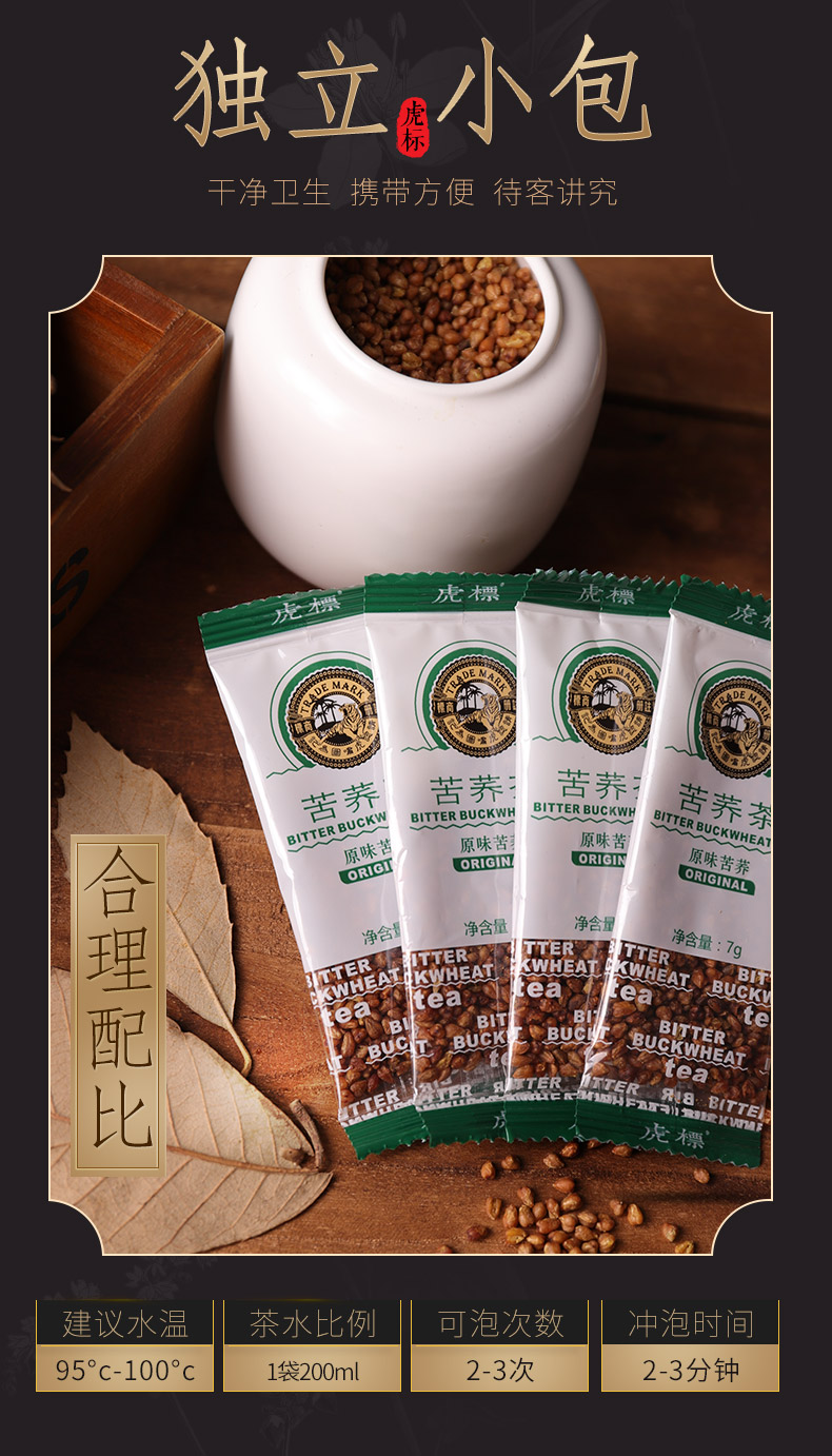 这款虎标苦荞茶,该茶是一种炒米茶,选用高寒山区优质鞑靼荞麦胚芽精制而成,富含粗蛋白、粗脂肪和人体所需的19种氨基酸等生物活性物质,有降血压、血糖、血脂,改善微循环的保健效果,冲泡出来的茶色泽金黄,入口是清新的麦香。