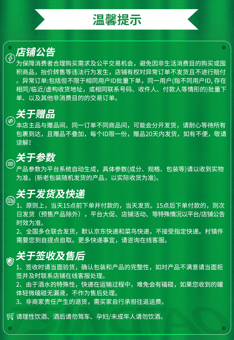 规格是500ml*18听*2箱,送禧罐500ml*12罐。