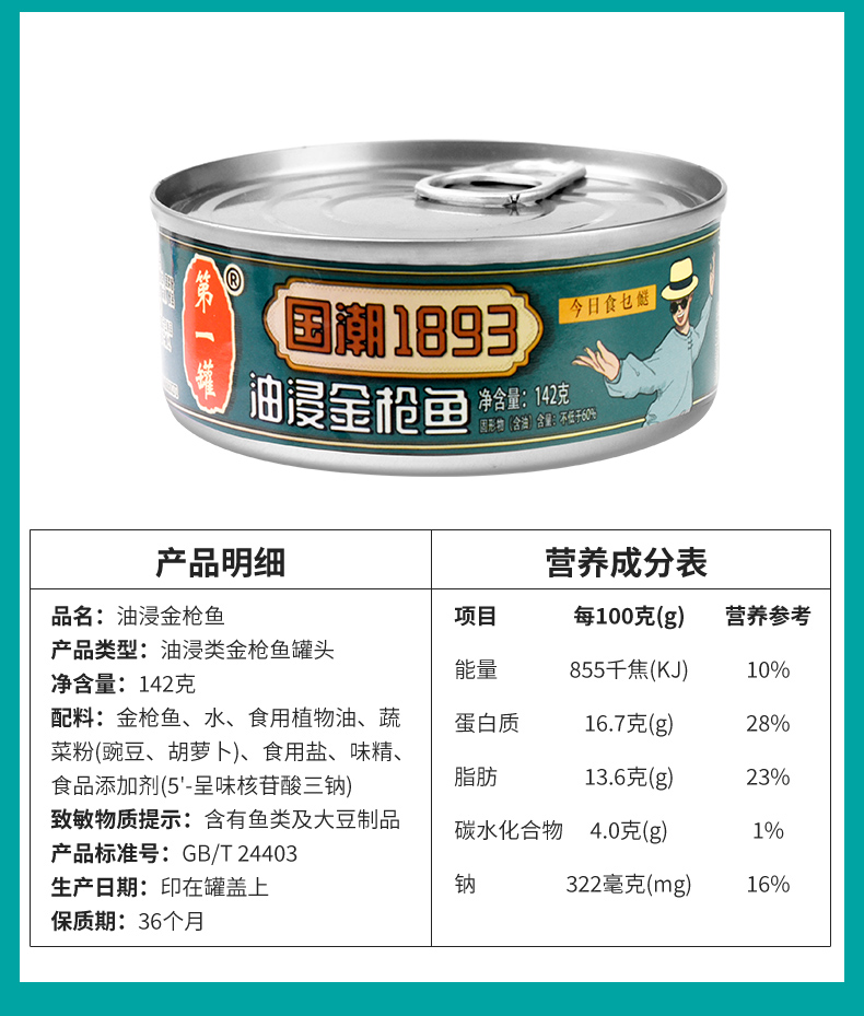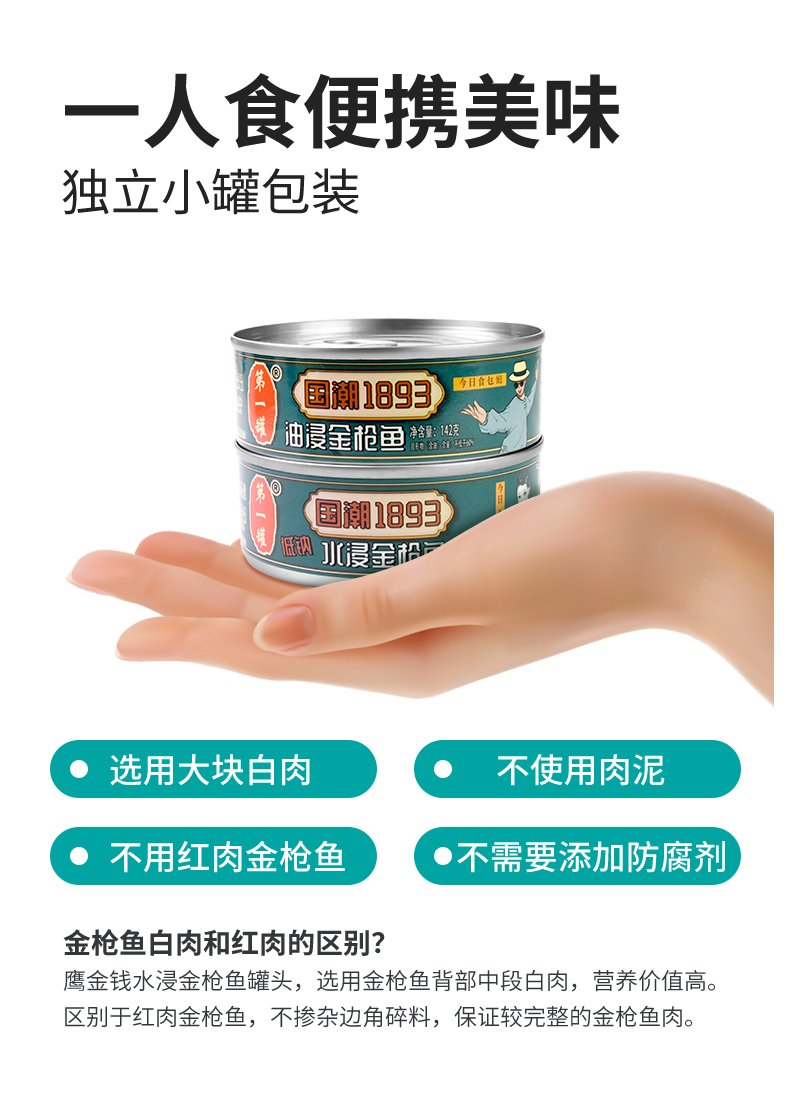 天猫第一罐旗舰店27.93元,可领8元优惠券,实付19.93元到手;3罐此价,油浸正常口味、水浸低盐2种口味可选。