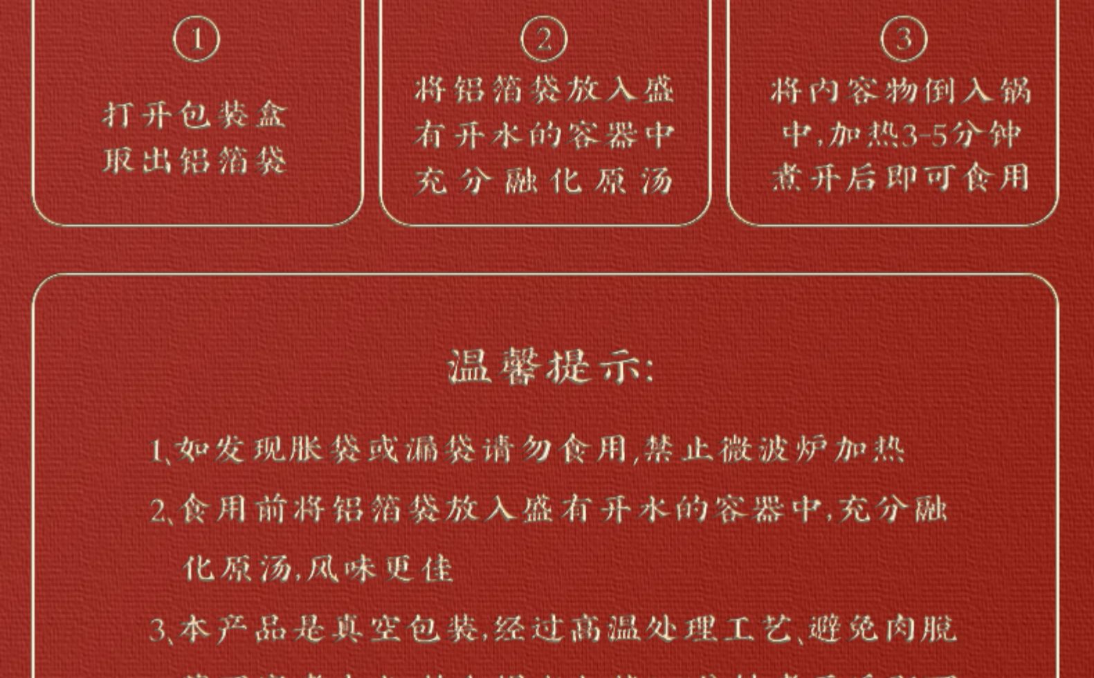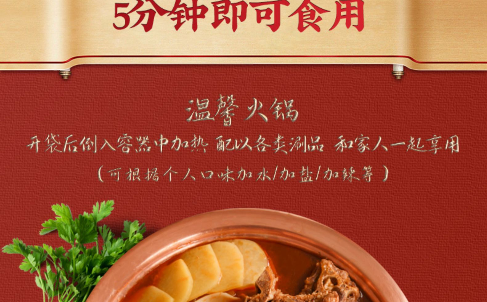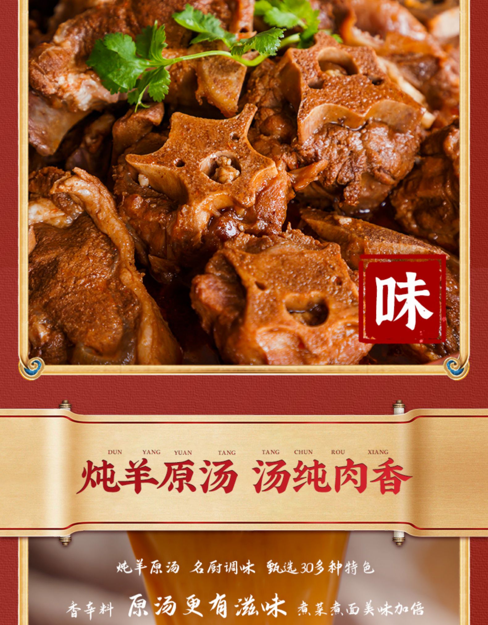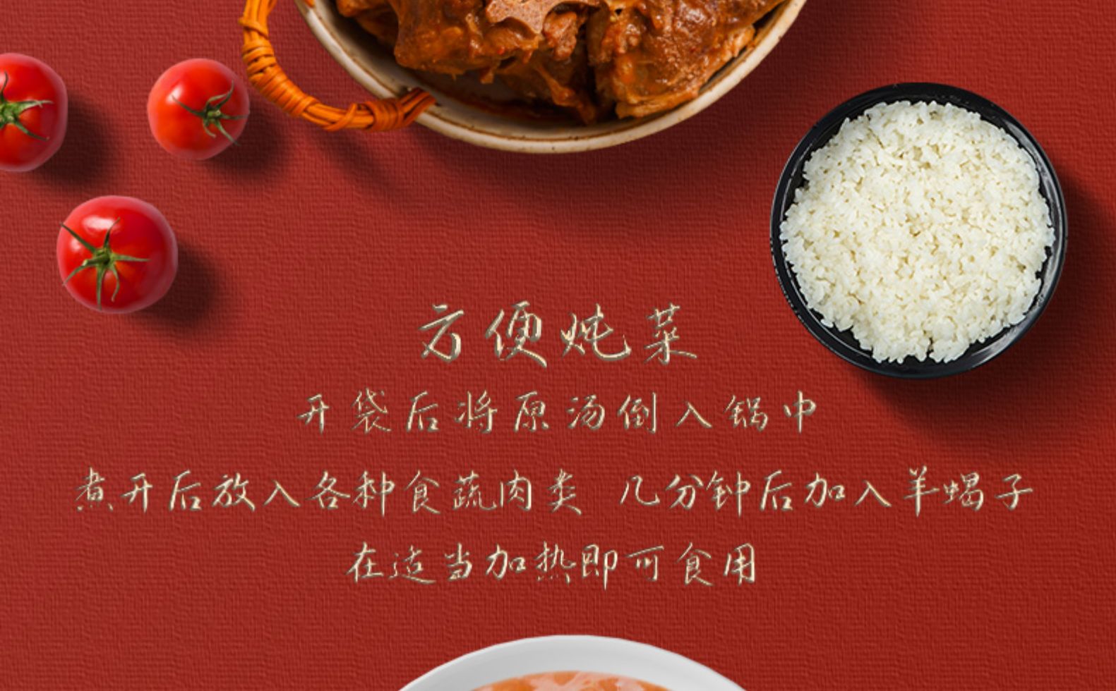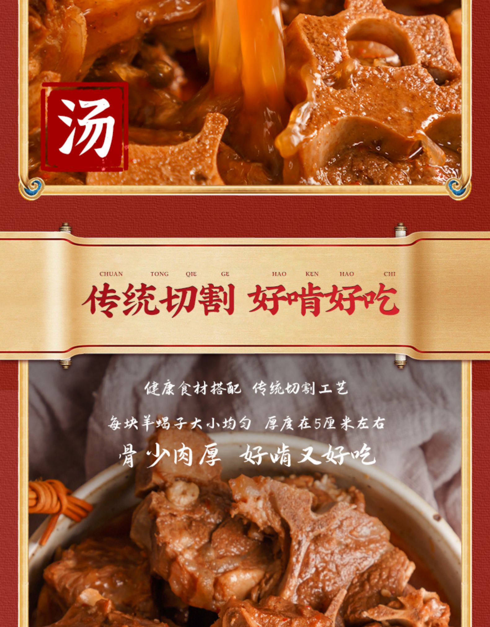 这款老诚一锅酱香微辣羊蝎子火锅,来自于180天的内蒙古羔羊,使用物理切割,骨少肉多,经过排酸、蒸煮、卤制、121℃高温杀菌封装,口感香嫩,肉质鲜而不膻,肉鲜嫩骨髓多,搭配汤料,加热即食。