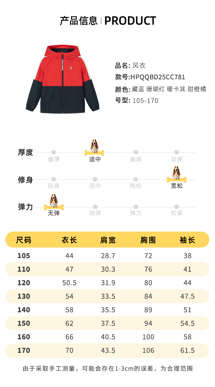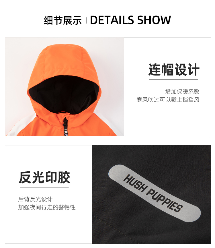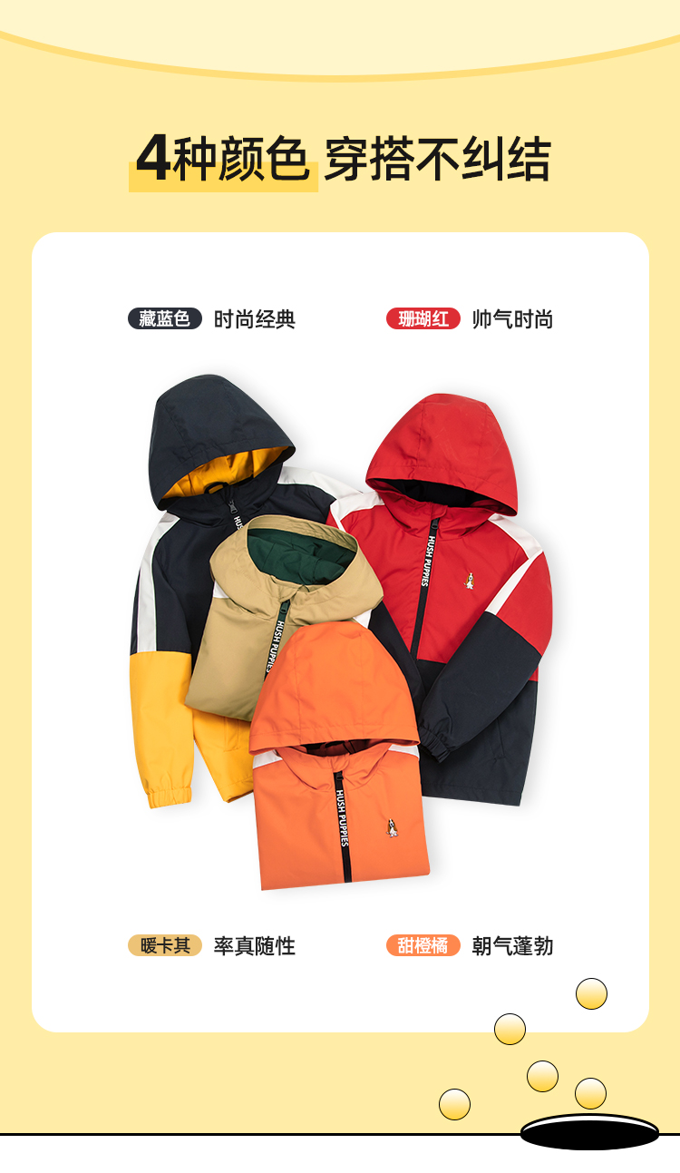 款式设计上,采用合体版型连帽设计,穿着舒适不束缚;双层门襟,增加了防风保暖性,门襟拉链带有护角,防止夹到宝宝娇嫩肌肤。经典斑点狗刺绣LOGO,彰显品牌魅力。