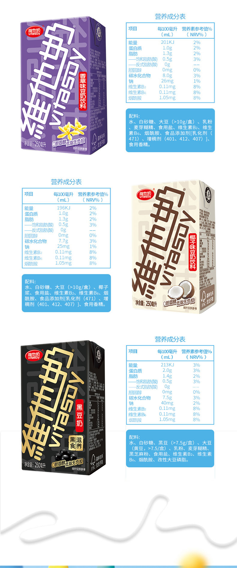 天猫vitasoy维他奶旗舰店84.9元,可领21元优惠券,实付51.9元到手,规格为250ml*30盒,原味+巧克力+香草+椰子+黒豆 多口味豆奶组合装,优质植物蛋白易于消化吸收,低脂肪,0胆固醇,浓香清甜,全家都爱喝~领券链接点此