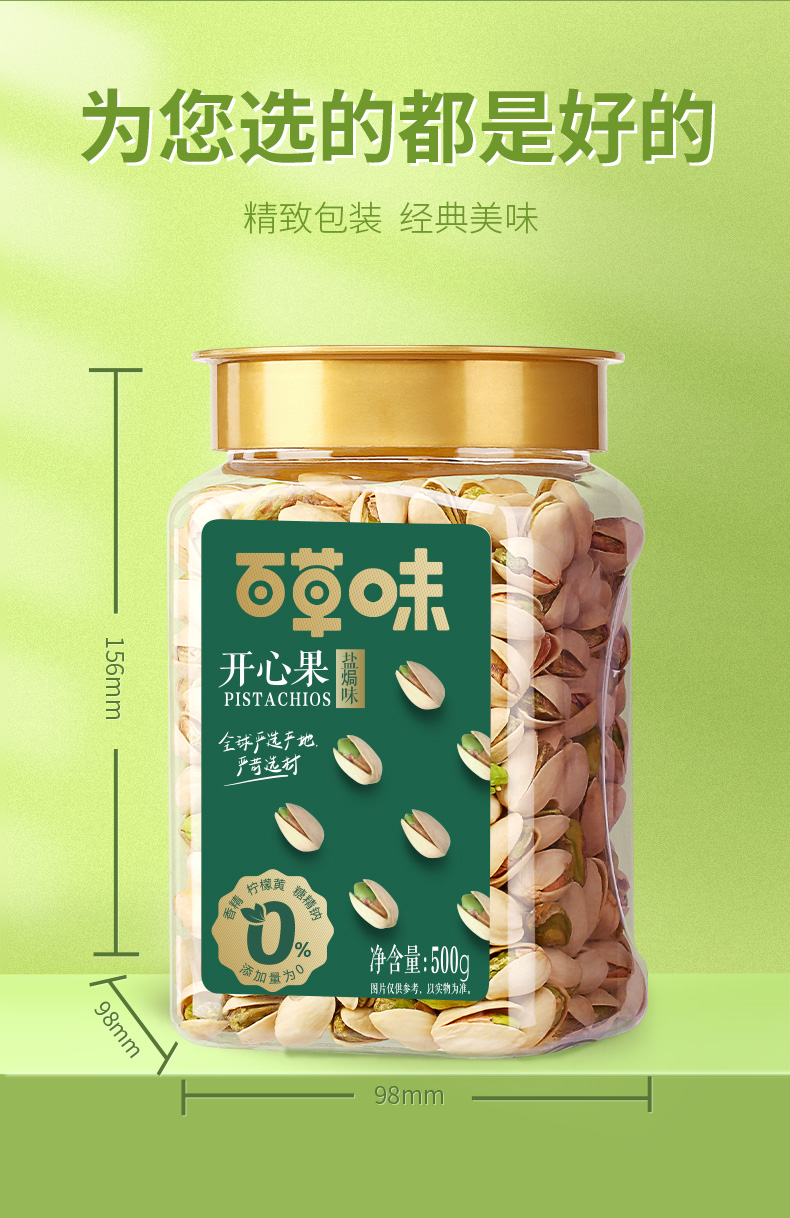 百草味旗舰店99元,下单立减44.1元,可领5元优惠券,实付49.9元到手;开心果原果来自美国加州,果实自然成熟开口,果肉饱满、大小均匀、经典盐焗口味,酥脆微软,没有经过漂白,可健康食用。