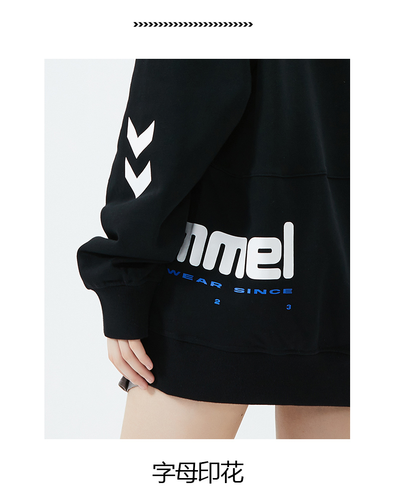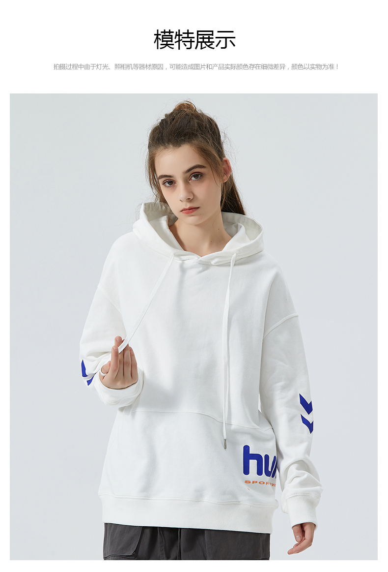 这款hummel 宽松长袖帽衫,采用棉涤混纺面料,摸起来的手感细腻,亲肤透气,无刺激不适感,有着接近肌肤的触感,有很好吸湿排汗速干性,潮流宽松版型,透气舒适,百搭时尚,日常休闲、运动都能穿。
