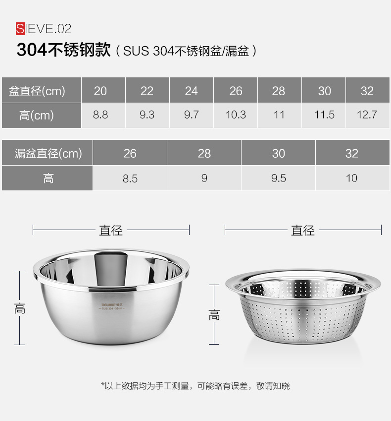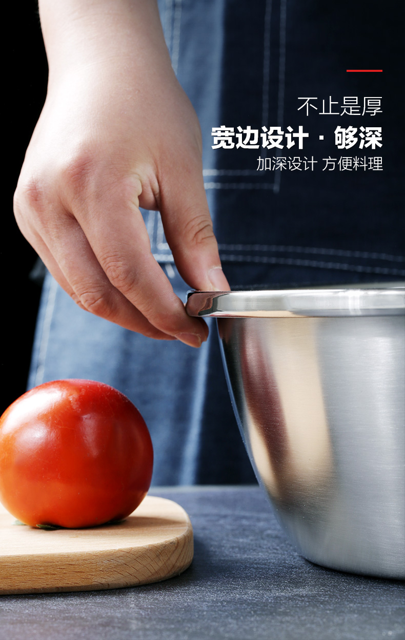 食品接触用不锈钢加厚制成,厚度均匀,抗压强度大,耐腐蚀,不生锈,卫生健康;圆润边角,光滑不刮手,特殊的收边工艺,完全不会有割手的情况出现。