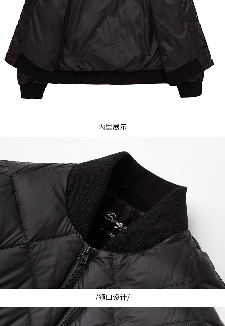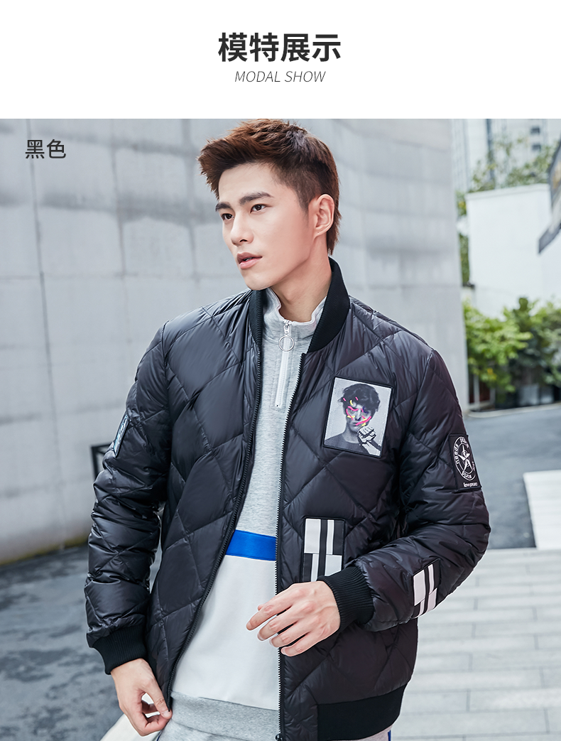 修身版型,上身不臃肿。门襟处采用高品质拉链,提拉顺畅,经久耐用。罗纹袖口设计,防止钻缝,进一步提升保暖效果。时尚贴片设计,简约棒球领款式,时尚百搭。