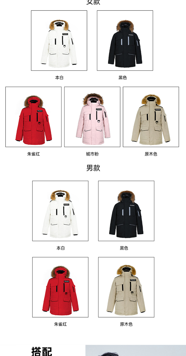 细节上:合体版型,一体防风帽+双层防风门襟+双层松紧袖口,全方位防风系统防止寒气进入,帽口配有蓬松厚实貉毛大领,绒毛丰满,细腻柔滑,环绕颈间,抗风驭暖,提升气质。