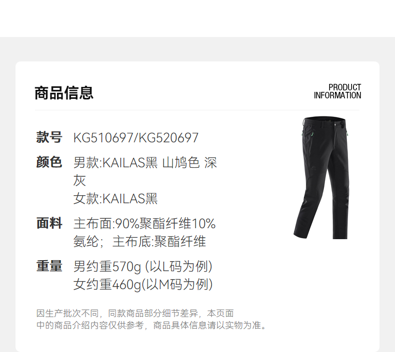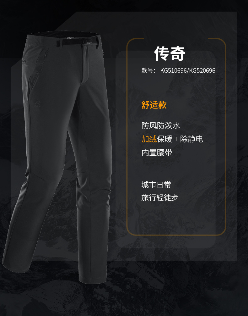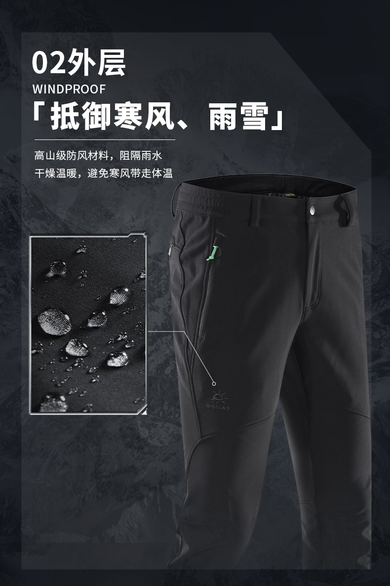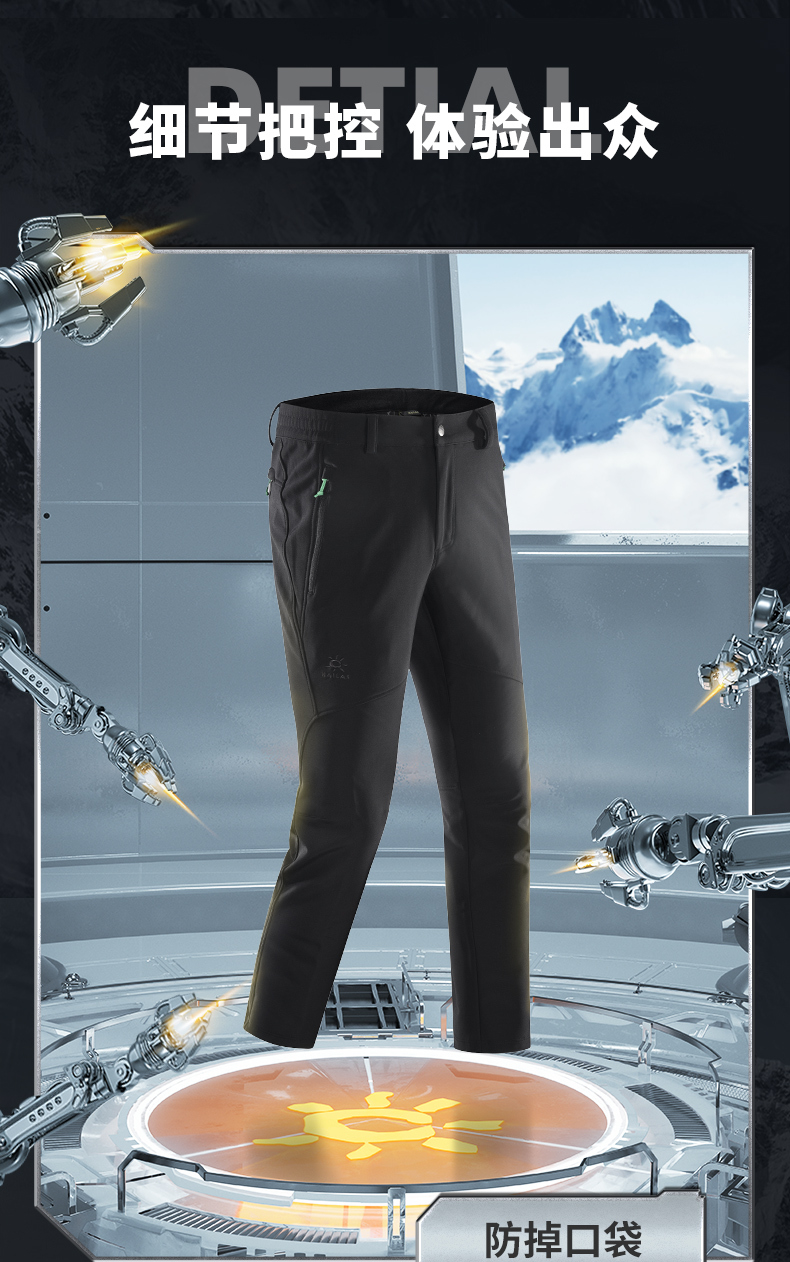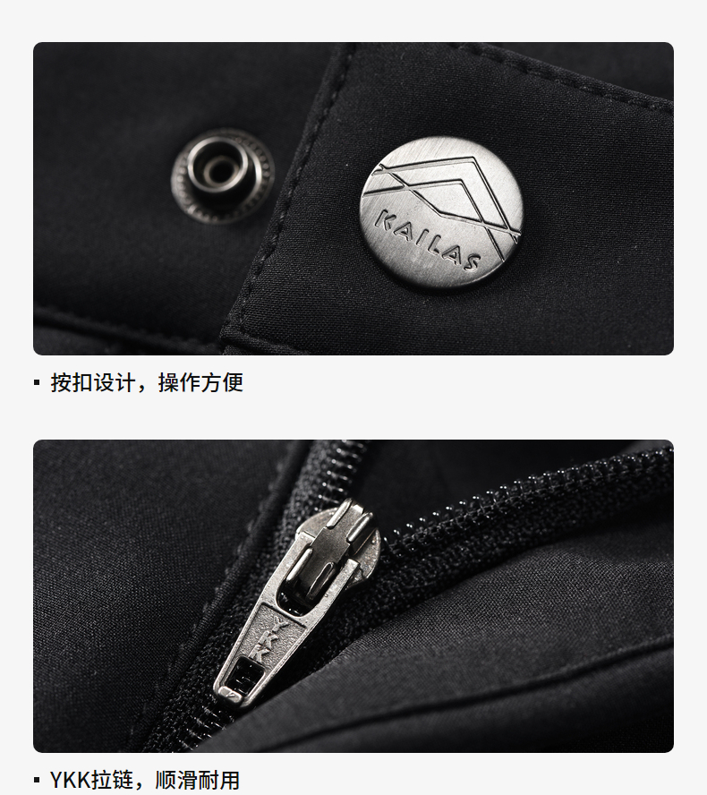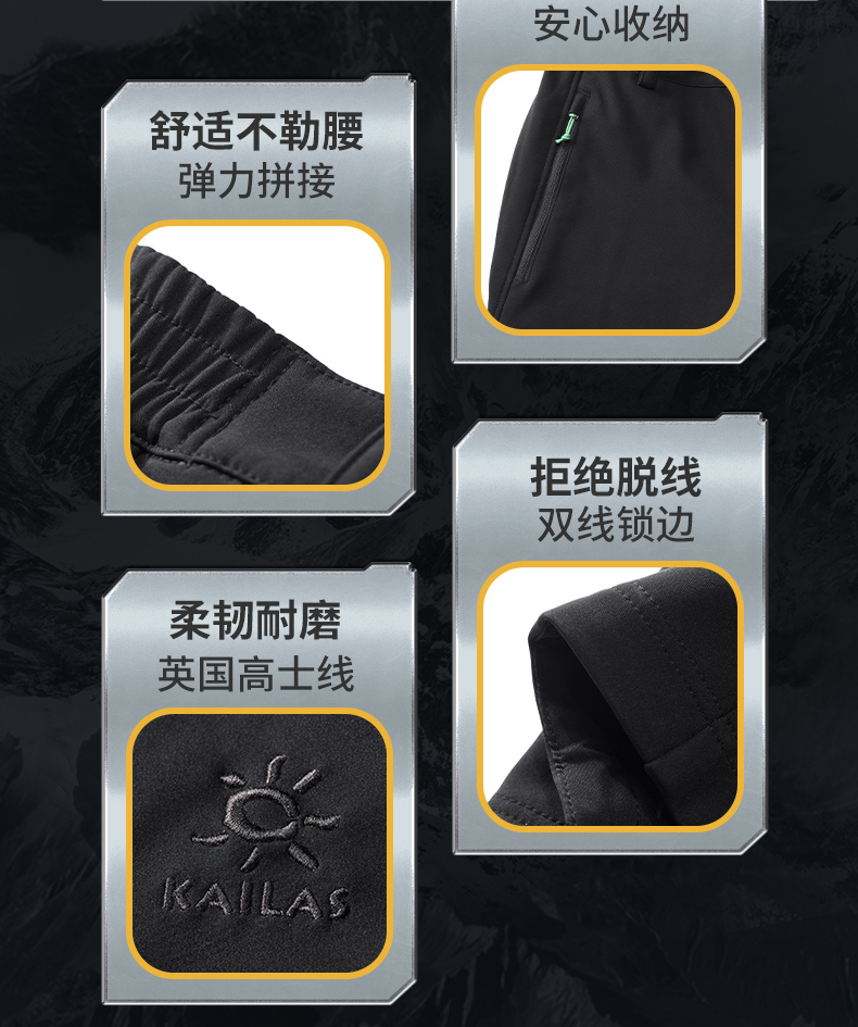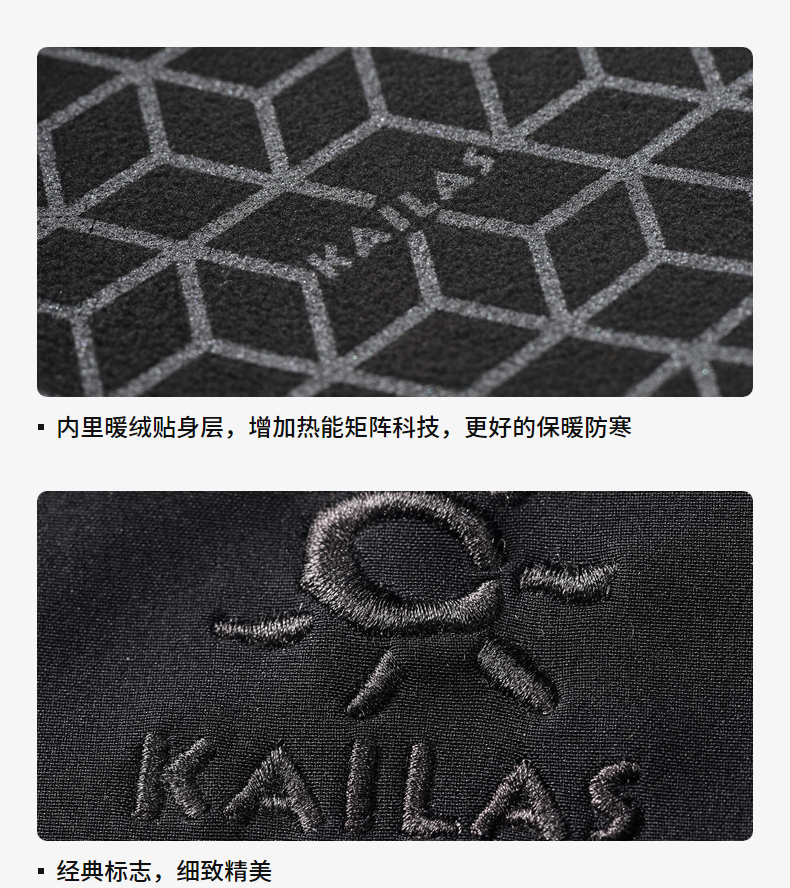这款凯乐石Kailas软壳裤,采用高密度科技面料,防风、防泼水、透气、保暖,可保持体表干爽舒适;运用热能矩阵科技,面料里层是THERMAL MATRIX科技面料含自然发热涂层,可释放负离子平衡,强效聚温保暖,面料还混有10%的氨纶弹性纤维,上身不紧绷,